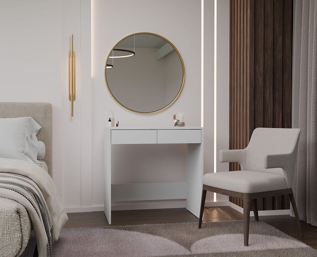 Weitere Möglichkeiten:In der Angebotspalette ist der Schreibtisch auch mit Spiegel und LED-Beleuchtung erhältlich (kompletter Schminktisch).