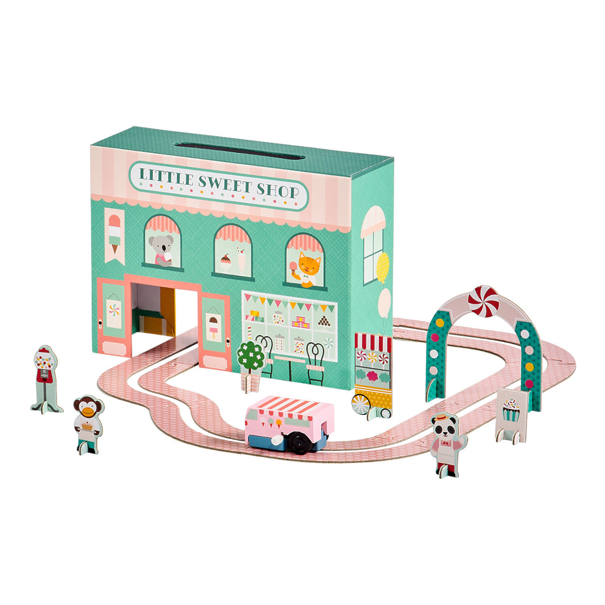 Es ist Zeit für eine süße Belohnung! Ziehen Sie das Eiswagen auf und beobachten Sie, wie es an der Konditorei vorbeifährt, um sein Ziel zu erreichen! Das perfekte Spielzeug für stundenlanges fantasievolles Spielen. Die Box kann dank des Seilgriffs einfach transportiert werden. Hauptmerkmale: beidseitige Konditorei, hölzernes aufziehbares Eiswagen, 8-teilige Strecke, 10 weitere Spielteile, einfach zusammenzubauende Strecke, plastikfrei verpackt mit Rücksicht auf die Umwelt, geeignet für Zuhause und unterwegs, für Kinder ab 3 Jahren. Das FSC®-Zertifikat (Forest Stewardship Council) garantiert, dass das Holz, aus dem das Produkt hergestellt wurde, nicht illegal geschlagen wurde und aus Wäldern stammt, die auf umweltfreundliche oder naturverträgliche Weise bewirtschaftet werden, wobei strenge Umwelt- und Sozialanforderungen eingehalten werden. Das FSC®-Label auf dem Produkt bedeutet, dass Sie durch Ihren Kauf helfen, Wälder zu schützen und eine umweltfreundliche, verantwortungsvolle oder naturverträgliche Bewirtschaftung zu unterstützen, die unsere Wälder stabiler, gesünder macht, eine natürliche Artenzusammensetzung hat und besser gegen die negativen Auswirkungen des Klimawandels resistent ist.