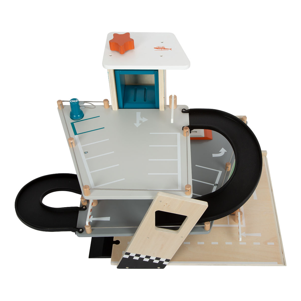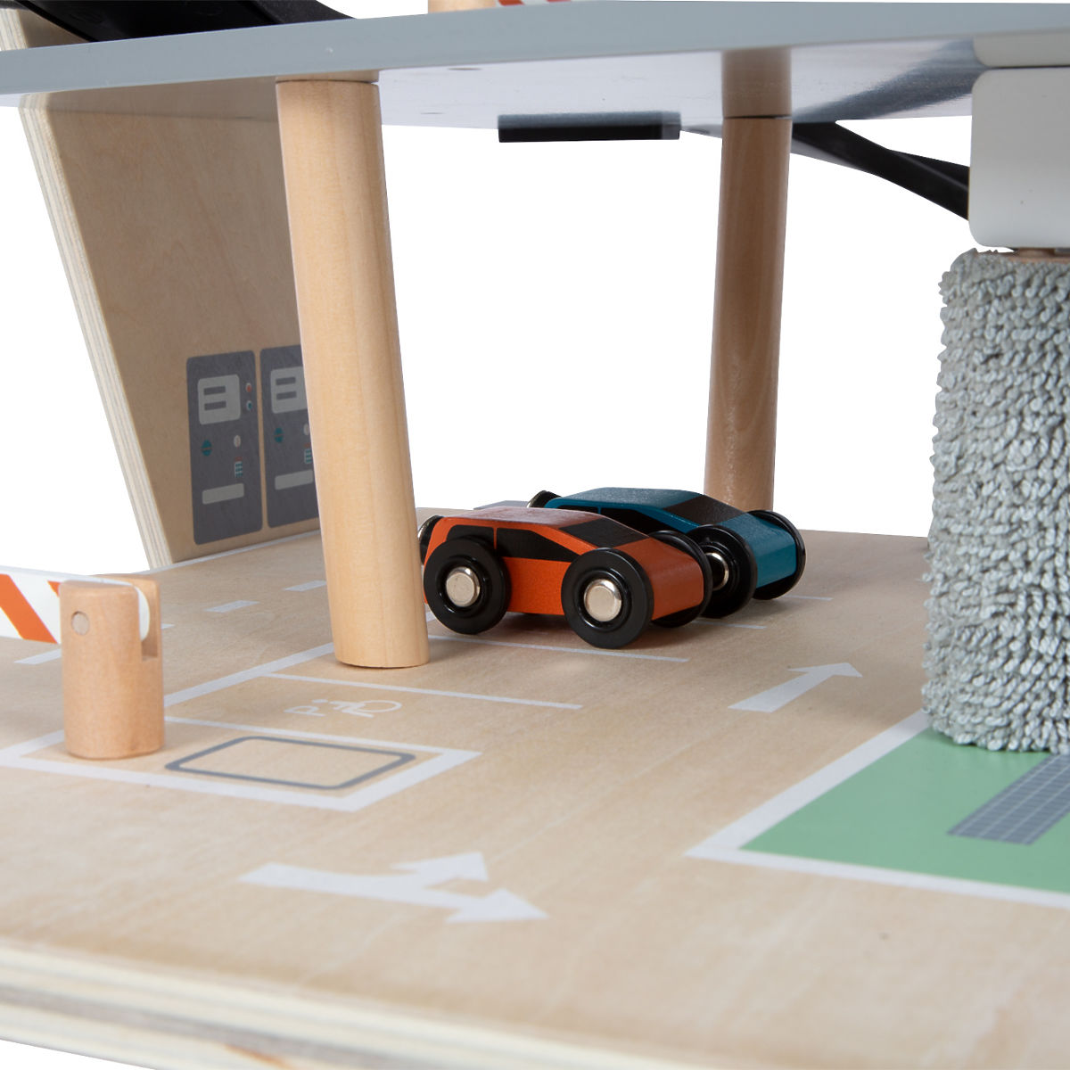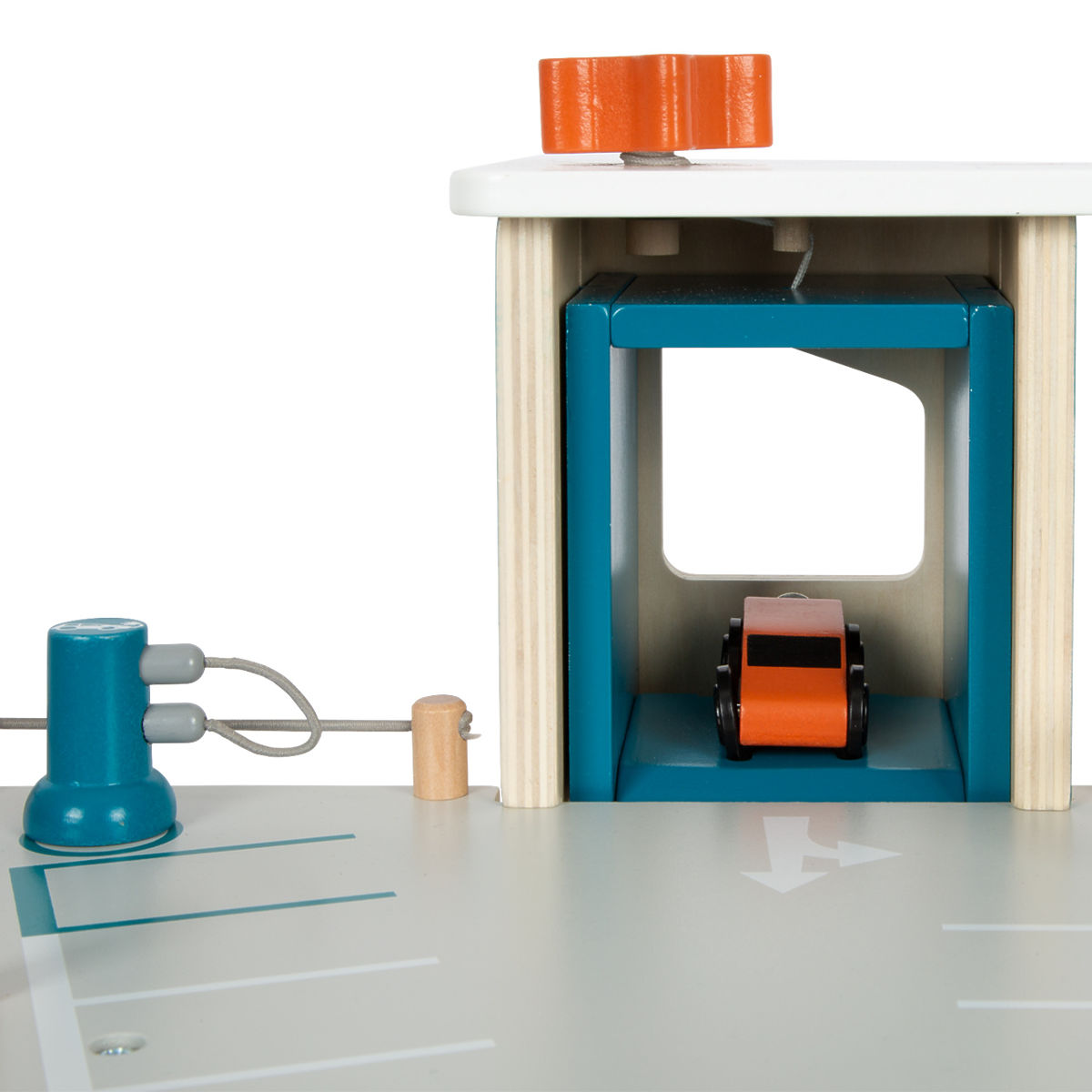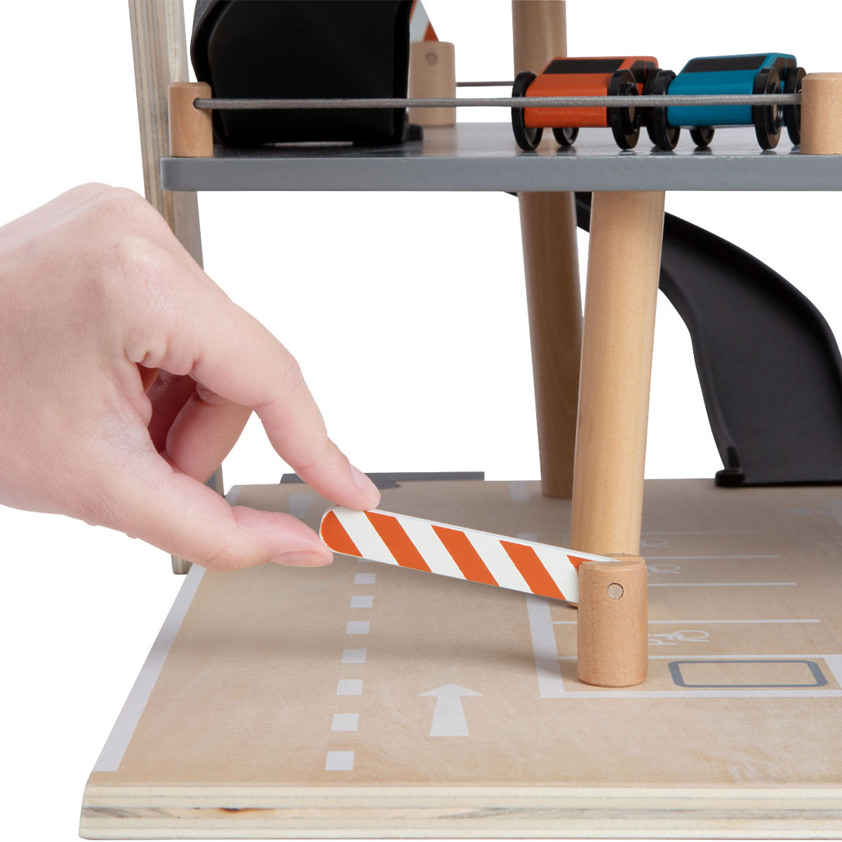 Das Video ist nur illustrativ und zeigt ein verwandtes Produkt. Parken, tanken, waschen oder reparieren – alles mit einer Garage! Sie bietet drei reich ausgestattete Etagen, die durch einen attraktiven, funktionalen Aufzug und unterhaltsame, nahtlos ineinander übergehende Rampen verbunden sind. Teil der Ausstattung sind zwei Autos, die bei fantastischen Spielen die Tankstelle, Ladestation, Hebebühne oder Waschstraße mit realistischen Bürsten nutzen können. Jede Ebene ist zudem mit einer mechanischen Schranke für besonders fesselnde Erlebnisse ausgestattet. Die Etagen sind mit Gummileisten versehen, die den Fahrspaß der Autos dynamischer machen und ein Herausfallen verhindern. Die Garage ist detailliert mit vielen bunten Symbolen und Markierungen verziert, die auch lehrreiche Elemente ins Spiel bringen. Sie besteht aus starkem, robustem und langlebigem Holzsperrholz mit Ergänzungen aus Massivholz und unbedenklichem Kunststoff. Das Produkt erfordert Montage und wird mit einer bebilderten Aufbauanleitung geliefert. Hauptmerkmale: Garage und 2 Autos, 3 Etagen verbunden durch einen funktionalen Aufzug und 2 Rampen, Tankstelle, Ladestation, Hebebühne, Waschstraße und 3 Schranken, kompatibel mit Eisenbahnschienen und Zubehör anderer Hersteller, reich verziert mit einfachen Symbolen und Markierungen, robustes und langlebiges Holzdesign.