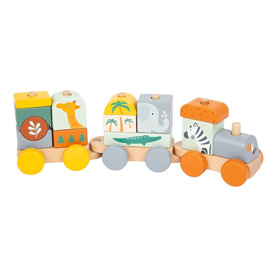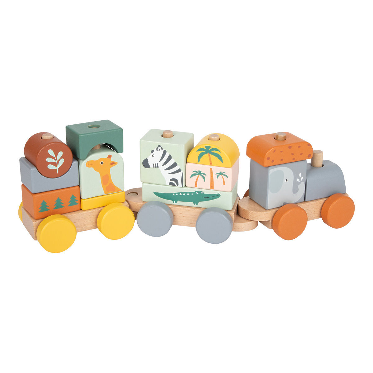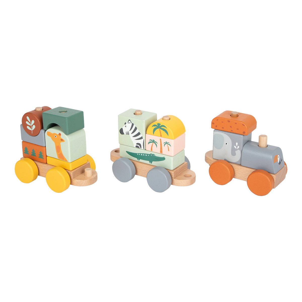 Klappen Sie es zusammen und verlassen Sie die Station! Dieser Holzzug in trendigen Farben fährt erst los, wenn alle Fahrgäste eingestiegen sind – ein Zebra, ein Elefant, eine Giraffe und ein Krokodil. Der Zug mit vielen Details ist auch ein Steckspielzeug, das Kindern beim Zusammenklappen Freiheit gibt – jeder Würfel passt an mehrere Stellen. Nächster Halt: Safari! Das Spielzeug trainiert die Motorik der Kinder. Hauptmerkmale: illustrierte, pastellfarbene Lokomotive, 2 Wagen und 13 Teile