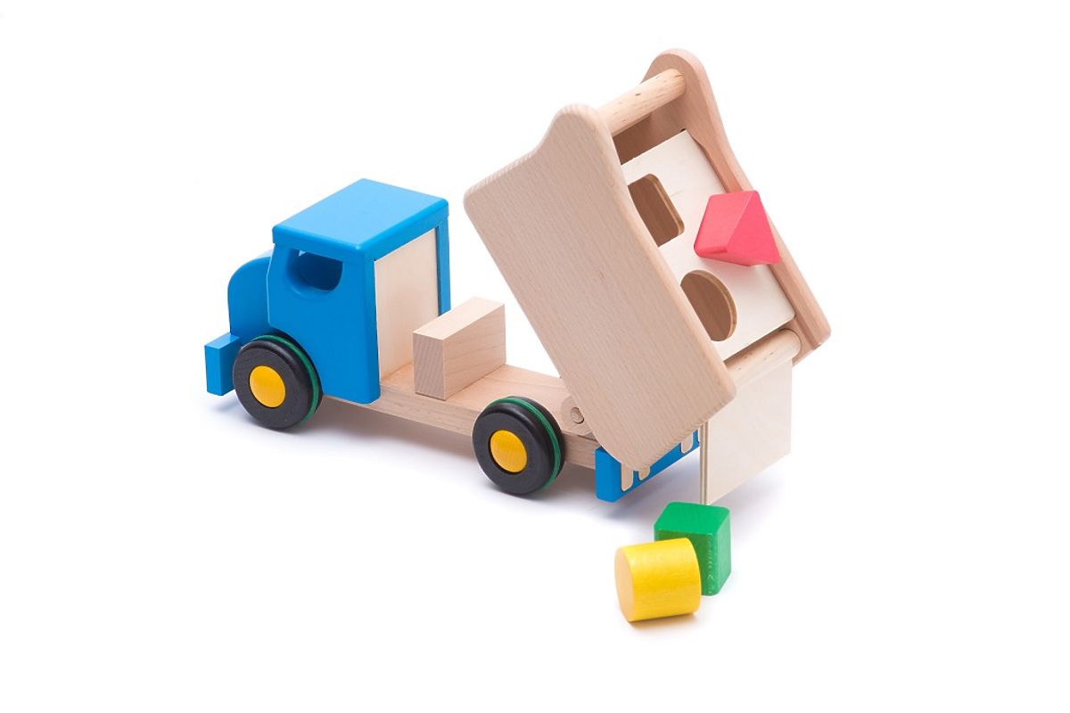 Einsteckspielzeug und Holzauto mit kippbarem Oberteil. .. mehr