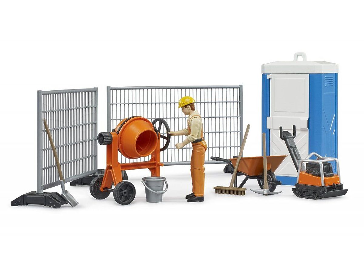 Bauset mit Bauzäunen, Rüttelplatte und Mörtelmischer. .. mehr