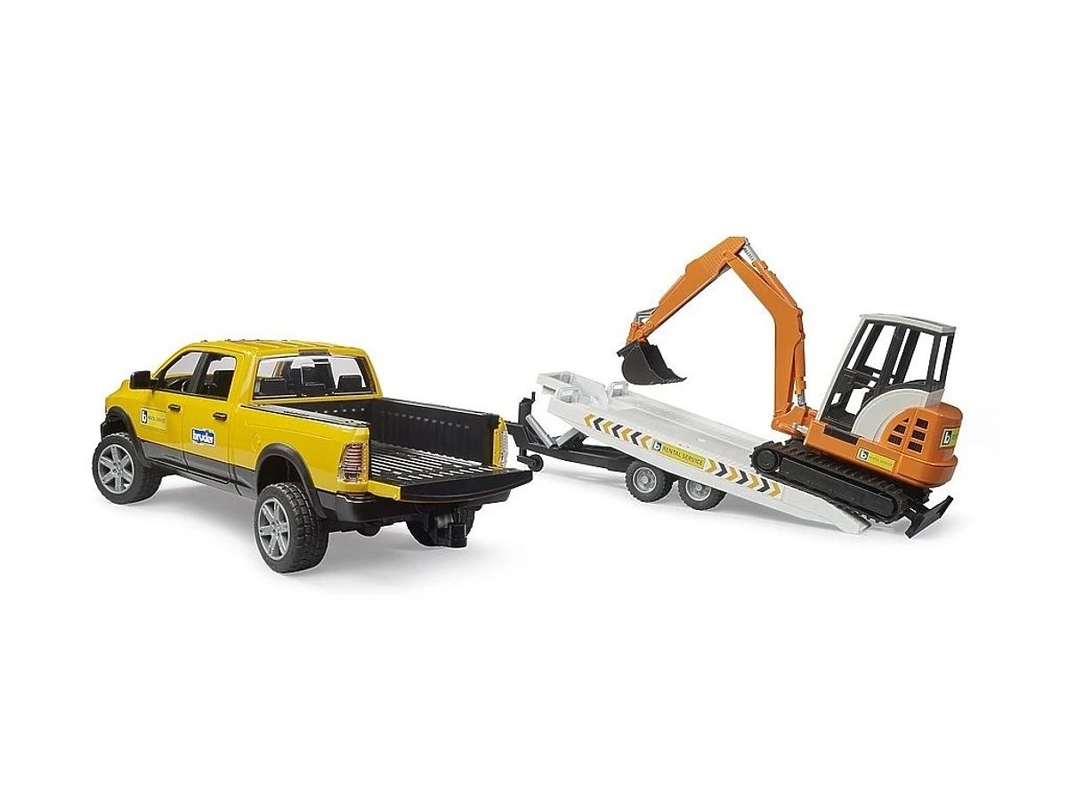 Das RAM-Modell mit Anhänger und Minibagger ist eine originalgetreue Nachbildung des echten RAM-Fahrzeugs, das robust ist und sich durch eine hohe Zugkraft auszeichnet. Zum Set gehört ein Anhänger, der den sicheren Transport des Minibaggers ermöglicht. Die Plattform ist kippbar, was das Be- und Entladen erleichtert, und die Deichsel ist mit einer Stützvorrichtung für sicheres Parken ausgestattet. Die Kabine des Minibaggers dreht sich um 360°, der Bagger hat einen abnehmbaren Löffel und eine verstellbare Schaufel. Dank der Gummiketten kann er sich auch in schwierigem Gelände bewegen. Das Modell verfügt über gefederte Achsen, die auch Fahrten im Gelände ermöglichen, und die verlängerte Lenkradverlängerung erleichtert die Steuerung. Die Kabine ist groß genug für bis zu 4 bworld-Figuren und alle Türen sind zu öffnen. Auf der Ladefläche können kleinere Lasten transportiert werden, und die Heckklappe kann zum einfachen Beladen geöffnet werden. Präzise aus hochwertigen Materialien gefertigt. Erstellen Sie eine realistische Baustelle mit weiteren Bruder-Modellen wie der Bauarbeiterfigur (BR60020), dem Minibagger (BR2456) oder den Verkehrsschildern (BR62007). Präzise aus hochwertigen Materialien gefertigt. Hauptmerkmale: Maßstab 1:16, Steuerung über verlängertes Lenkrad, öffnende Kabinentüren, öffnende Ladebordwand, abnehmbare Anhängerkupplung, gefederte Achsen, kompatibel mit bworld-Figuren, hergestellt in Deutschland aus hochwertigen Materialien.
