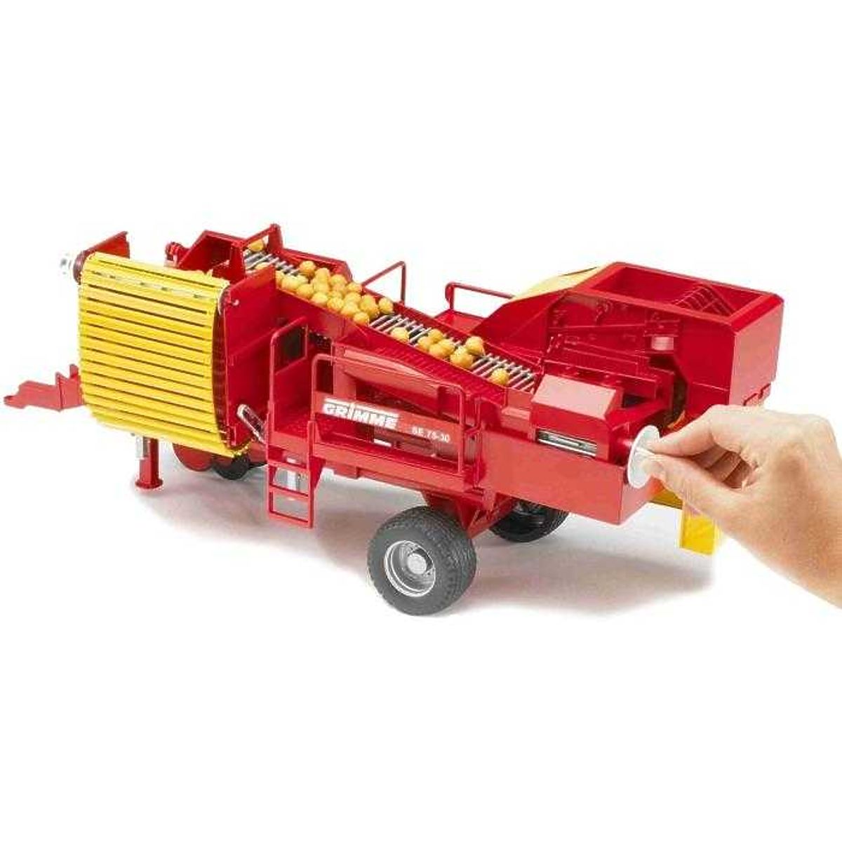 Die Kartoffelerntemaschine ist ein großes und detailliert gearbeitetes Modell eines Mähdreschers. Der wichtigste Teil ist das Abnahmekettenband, das sich leicht mit einer Handkurbel bedienen lässt. Von dem Band werden die Kartoffeln direkt in den Behälter transportiert, der nach Wunsch eingestellt werden kann. Die Stabilität des Fahrzeugs wird durch einen klappbaren Stützfuß gewährleistet, das Förderband ist klappbar und der Mähdrescher hat profilierte Reifen. Er kann an jeden BRUDER Traktor der Serien 20xx, 21xx und 30xx angeschlossen werden. Im Zubehör finden sich 80 Kartoffeln für die Maschine. Die Größe der Kartoffeln beträgt ca. 5-8 mm. Hergestellt in Deutschland aus hochwertigen Materialien. Hauptmerkmale: Abnahmekettenband mit Handkurbel bedienbar, klappbares Band, kompatibel mit Bruder Traktoren, 80 Kartoffeln, hergestellt in Deutschland