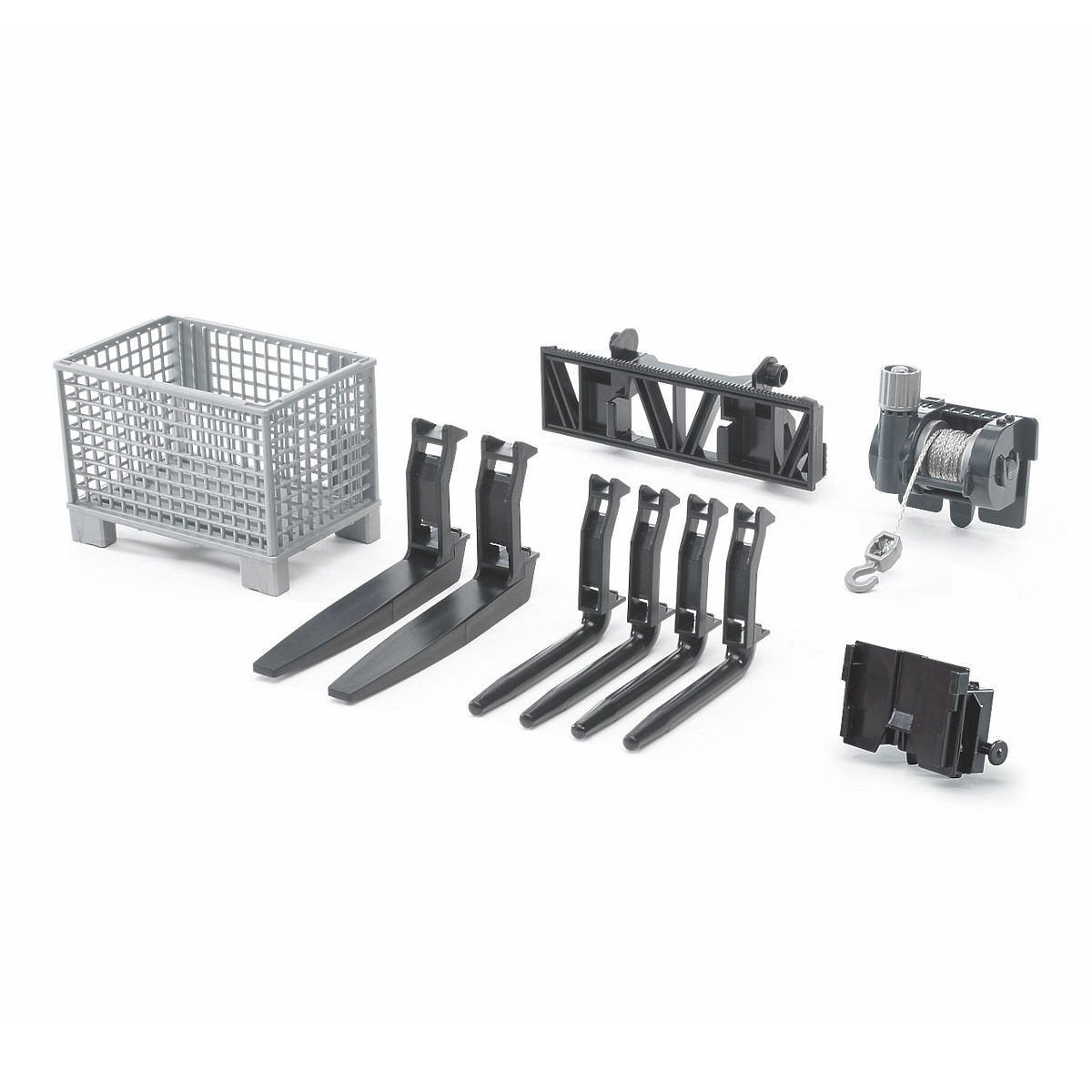 Ein Set, das es Ihnen ermöglicht, Lader in Paletten- und Gabelstapler umzubauen, oder die Seilwinde für nahezu unbegrenzte Geländegängigkeit zu nutzen. Das Set wurde im Maßstab 1:16 zu den echten Komponenten als originalgetreue Plastikkopie hergestellt. Es handelt sich um eine sehr hochwertige Verarbeitung der deutschen Firma BRUDER bis ins kleinste Detail, hergestellt in Deutschland aus hochwertigem ABS-Kunststoff, flexiblem Kunststoff mit glänzender Oberfläche, präzise ohne jegliche Grate oder Überläufe. Kompatibel mit Bruder Traktoren: 2042, 2052, 2062, 2112, 3011, 3021, 3031, 3041, 3051, 3091, 3096. Kompatibel mit Bruder Maschinen: 2125, 2129, 2136, 2140, 2141, 2431, 2441, 3580