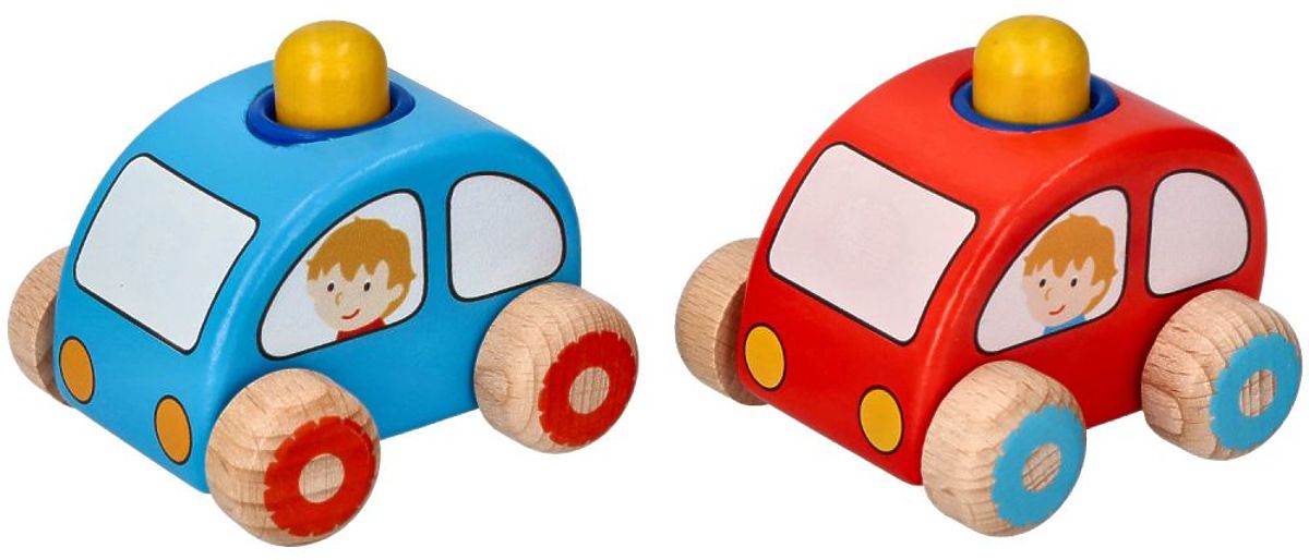 Holzautos für kleine Kinder sind nicht nur ein Spielzeug, sondern auch ein Hilfsmittel beim Erlernen des Greifens. Die Autos sind in der Größe an kleine Hände angepasst und mit Liebe zum Detail gefertigt. Im Fenster des Fahrzeugs sieht man einen fröhlichen Fahrer. Das rote Auto mit blauen Rädern wird die Aufmerksamkeit des Kindes auf sich ziehen.