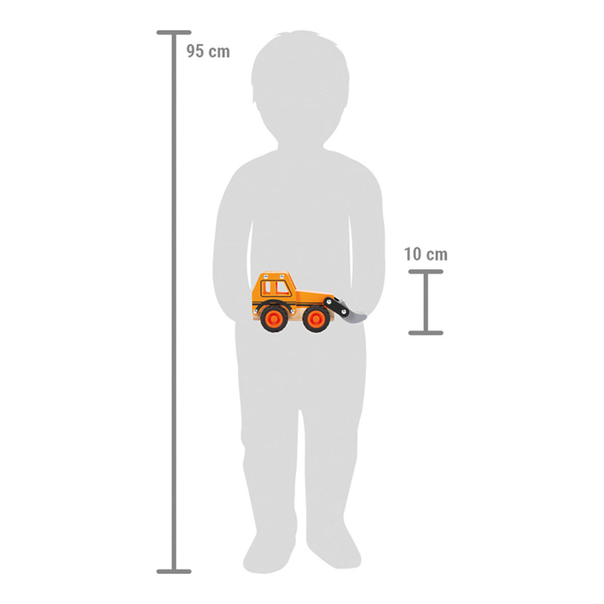 Heben und Bewegen von Lasten im Kinderzimmer, ja das ist möglich. Dieser Geländebagger aus FSC®-zertifiziertem Holz transportiert wichtige Materialien im Kinderzimmer auf robusten, gummierten Rädern. Der Bagger, ausgestattet mit einer beweglichen Schaufel, garantiert kreativen und realistischen Spielspaß beim Rollenspiel im Kinderzimmer. Dank abgerundeter Kanten und Fensteröffnungen können kleine Kinderhände ihn leicht greifen und bewegen. Das Gesicht an der Vorderseite des Fahrzeugs verleiht ihm Persönlichkeit und lädt zu kreativem und fantasievollem Spiel ein. In der Fahrerkabine ist auch genügend Platz für eine Figur, die von vorne in das Baufahrzeug eingesetzt werden kann. Die Figur ist nicht im Lieferumfang enthalten. Hauptmerkmale: fördert Hand-Augen-Koordination, Tastsinn und Motorik, bewegliche Schaufel, gummierte Räder, FSC® 100% Holz. Die Marke und das FSC®-Zertifikat (Forest Stewardship Council) garantieren, dass das Holz, aus dem das Produkt hergestellt wurde, nicht illegal geschlagen wurde und aus Wäldern stammt, die umweltfreundlich oder naturnah bewirtschaftet werden, wobei strenge Umwelt- und Sozialanforderungen eingehalten werden. Das FSC®-Label auf dem Produkt bedeutet, dass Sie durch Ihren Kauf helfen, Wälder zu schützen und eine umweltfreundliche, verantwortungsvolle oder naturnahe Bewirtschaftung zu unterstützen, wodurch unsere Wälder stabiler, gesünder, artenreicher und widerstandsfähiger gegen die negativen Folgen des Klimawandels werden.