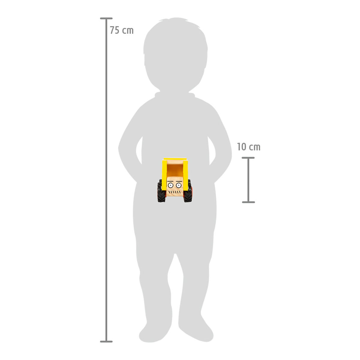 Robustes und langlebiges Spielzeugauto aus massivem, nachhaltig gewonnenem Holz. Es verfügt über eine geräumige, offene Kabine, in die eine Fahrerfigur .. mehr