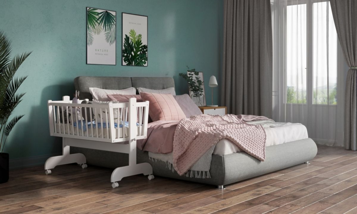 Dank der Rollen ist die Wiege mobil und kann nach Bedarf beliebig verschoben werden.