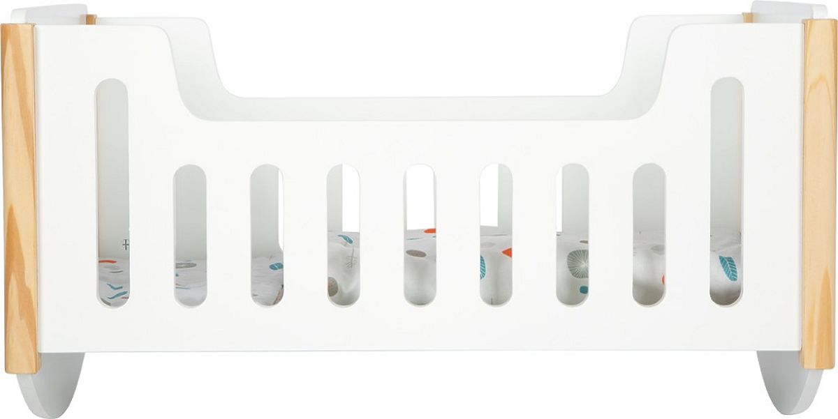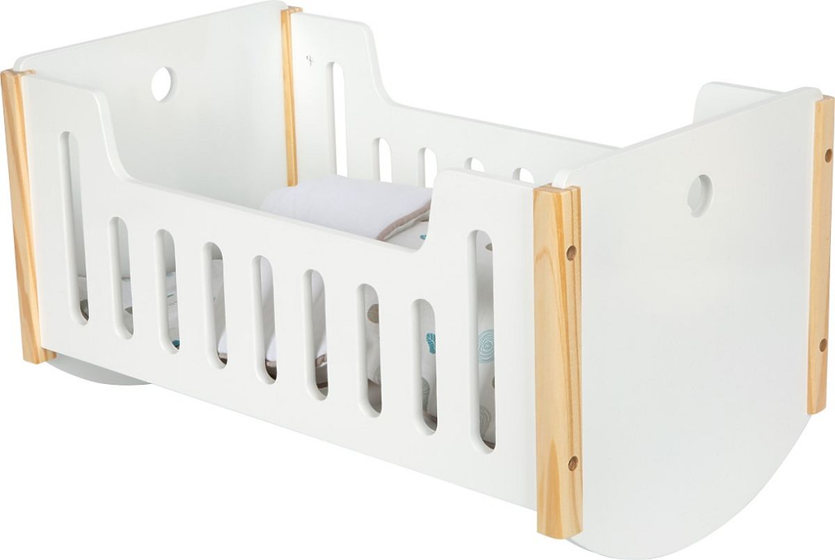 Diese moderne Holzpuppenwiege im skandinavischen Design ist das ideale Bettchen mit der Möglichkeit, Puppen oder Plüschtiere sanft zu wiegen. Im Lieferumfang sind ein Kissen und eine große Decke enthalten, die in farbneutraler, beidseitiger Bettwäsche bezogen sind. Zudem ist die Decke groß genug, damit Puppen oder Plüschtiere bis zu einer Größe von 46 cm bequem darunter schlafen können. Hochwertige, stabile Konstruktion, abgerundete Kanten und sanfte Farbtöne machen die Wiege zu einem stilvollen und hochwertigen Stück. Perfektes Spielzeug für jedes Kinderzimmer. Das Set enthält: 1x Bett, 1x Kissen, 1x Decke. Hauptmerkmale: Holzpuppenwiege und Bett in einem, übergroße Decke, beidseitige Bettwäsche, robuste Konstruktion, hochwertige Verarbeitung, abgerundete Kanten, für Puppen und Plüschtiere bis 46 cm, skandinavisches Design, sanfte Farbtöne. Little Button Die Reihe attraktiven Zubehörs für Puppen Little Button bietet eine breite Palette von Produkten, vom Kinderwagen über den Hochstuhl bis zum Schrank. Kunden werden leicht durch das einheitliche funktionale und dezente Design mit klaren Linien und schlichten neutralen Farben angesprochen. Dadurch können sie zusammen harmonische Sets bilden, die moderne Innenräume geschmackvoll ergänzen. Durchdachte Konstruktion und hochwertige Verarbeitung sorgen für hohe Stabilität, Sicherheit und Langlebigkeit. Mit ihrer Hilfe können Sie eine stilvolle Puppenecke einrichten, in der Ihre Kinder ihre Fantasie und Pflegefähigkeiten entwickeln können.