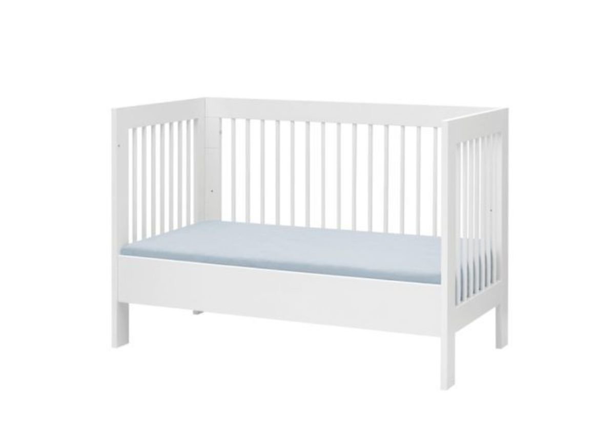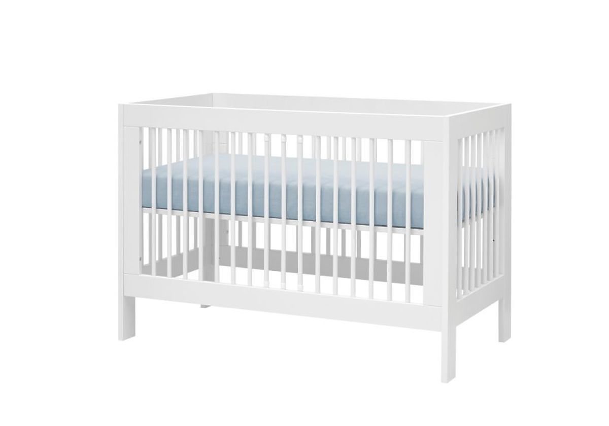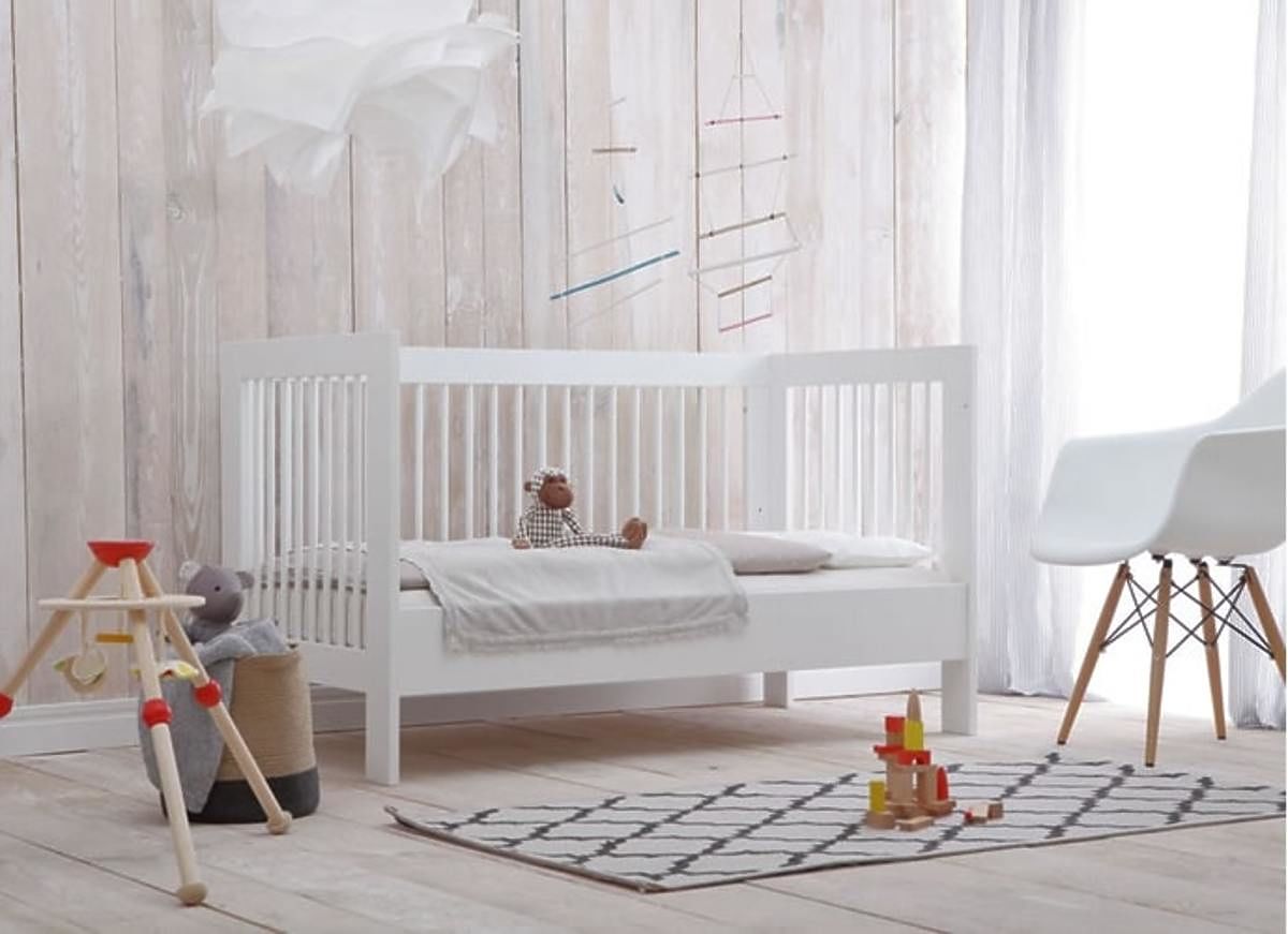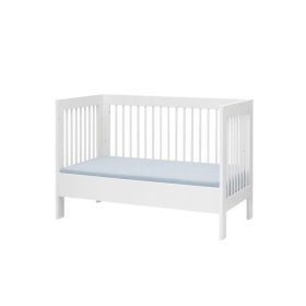 Das klassische Babybett 120x60 cm in Weiß ist nicht nur schön, sondern dank der abnehmbaren Seite auch sehr praktisch.