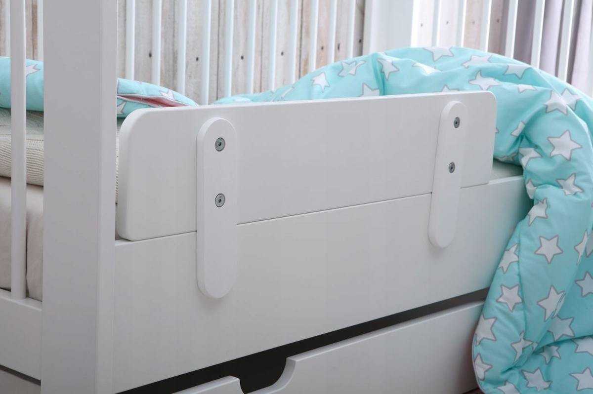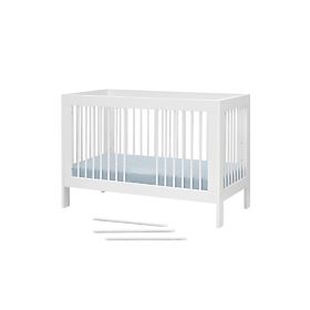 Das klassische Gitterbett 140x70 cm in Weiß ist nicht nur schön, sondern dank der abnehmbaren Seite auch sehr praktisch.