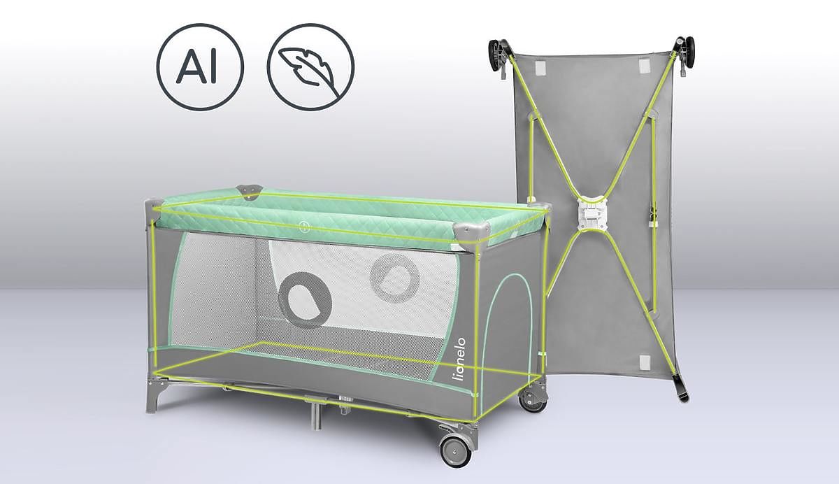 Das Reisebett Lionelo Flower Türkis mit Wickeltisch ist eine universelle Lösung für Eltern, die Wert auf Komfort und Sicherheit ihres Kindes legen. Das Kinderbett dient von der Geburt bis zum Alter von etwa 3 Jahren . Es vermittelt ein Gefühl der Geborgenheit und schafft einen Raum zum bequemen Ausruhen und Spielen allein oder mit den Eltern.