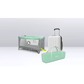 Das Reisebett lässt sich schnell auf ein kleines Maß zusammenfalten und in einer praktischen Tasche transportieren , die im Set enthalten ist. Mit zwei Rädern lässt sich das Kinderbett frei bewegen. Der Bezug ist leicht zu reinigen.