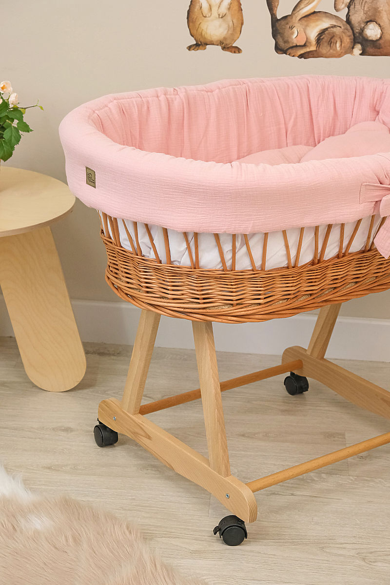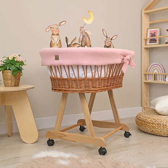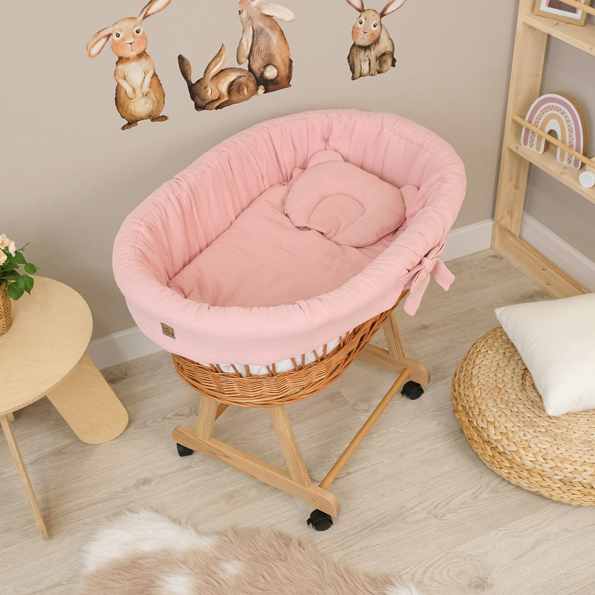Banaby.de » Kindermöbel / Babybetten / Stubenwagen / Weidenkörbchen mit Ausstattung für Babys - altrosa