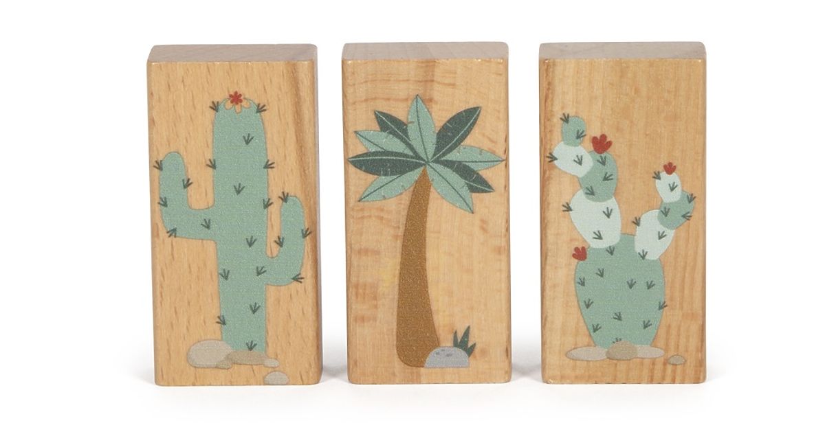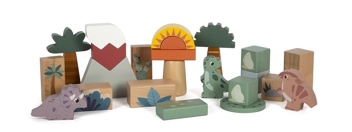 Holzbausteine mit Dinosauriermotiven fördern Kreativität und Motorik. .. mehr