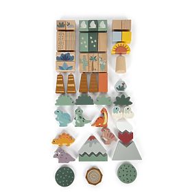 Begeben Sie sich mit Ihren Kindern in die Urzeit und genießen Sie viel Spaß mit diesem schönen Set aus Holzbausteinen mit Dinosauriern wie T-Rex, Stegosaurus und Triceratops. Es enthält sowohl natürliche als auch bebilderte Bausteine, um eine Landschaft zu gestalten, in der die Dinosaurier lebten. Die Holzbausteine Dino fördern die Entwicklung der Motorik, Vorstellungskraft und Kreativität und lehren gleichzeitig über die Natur und Geschichte dieser prähistorischen Kreaturen. Hergestellt aus 100% FSC®-zertifiziertem Holz, das aus nachhaltig oder naturnah bewirtschafteten Wäldern stammt.