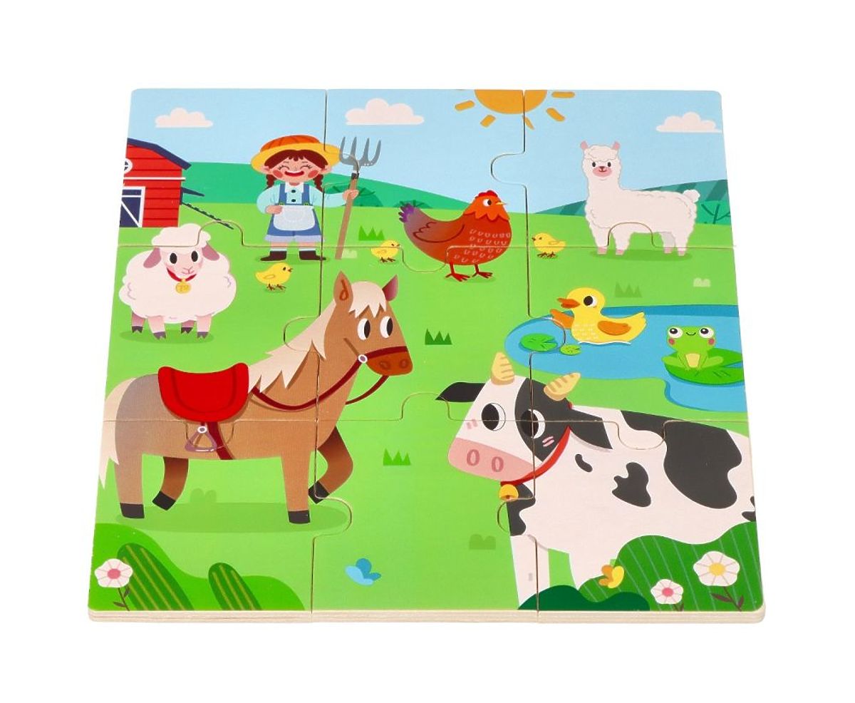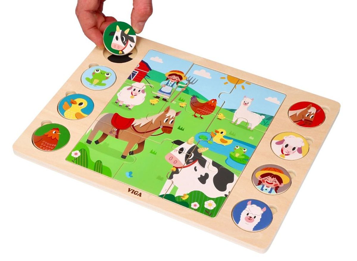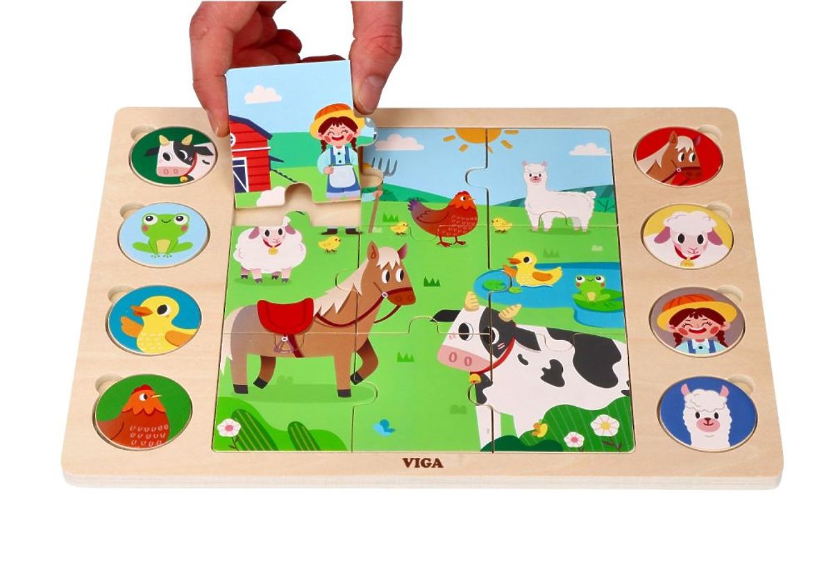 Ein sehr interessantes 2-in-1 Puzzle, das das Kind mit niedlichen Tieren vom Bauernhof bekannt macht. Dieses außergewöhnliche Set ist nicht nur ein großer Spaß, sondern auch ein pädagogisches Werkzeug, das auf sehr durchdachte Weise die Entwicklung des Kindes fördert.