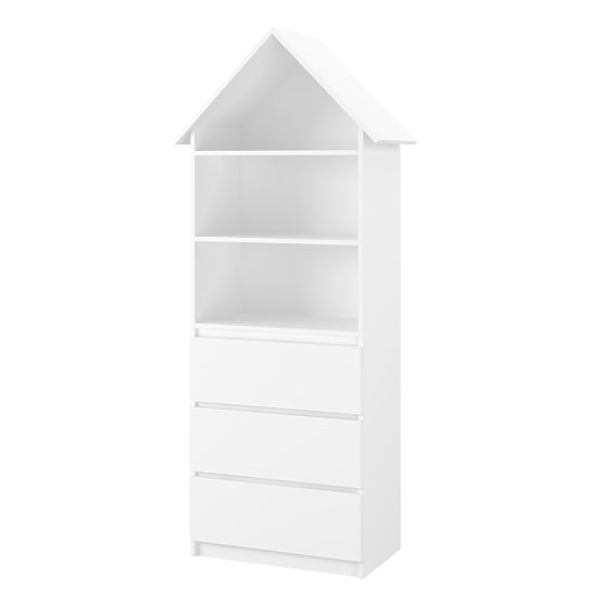 Das schöne und praktische Bücherregal Sofie in Form eines Hauses wird in jedem Kinderzimmer gut zur Geltung kommen. Der weiße Farbton bringt Leichtigkeit und Eleganz in das kleine Kinderreich. Die neutrale Farbe und das sehr beliebte Hausdesign machen das Zimmer sowohl für Mädchen als auch für Jungen gemütlicher.