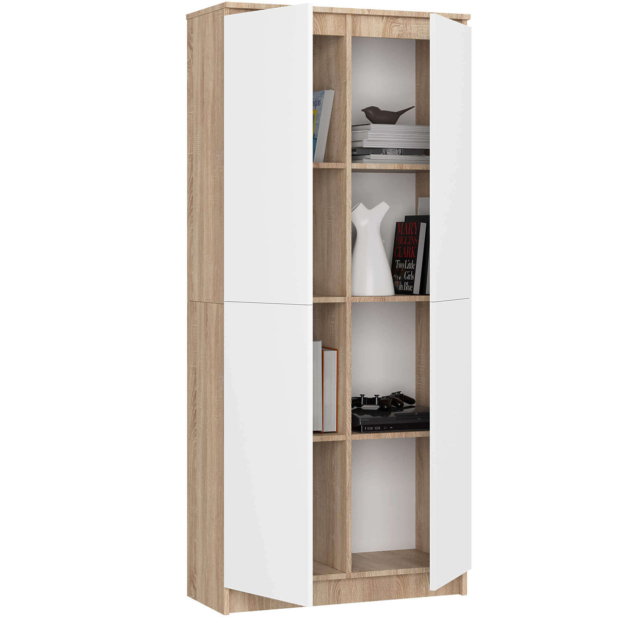 Banaby.de » Bücherschränke, Regalsysteme und Regale / Kinderregale / GESCHLOSSENES REGAL R80 2D 8P CLP EICHE SONOMA / WEISS