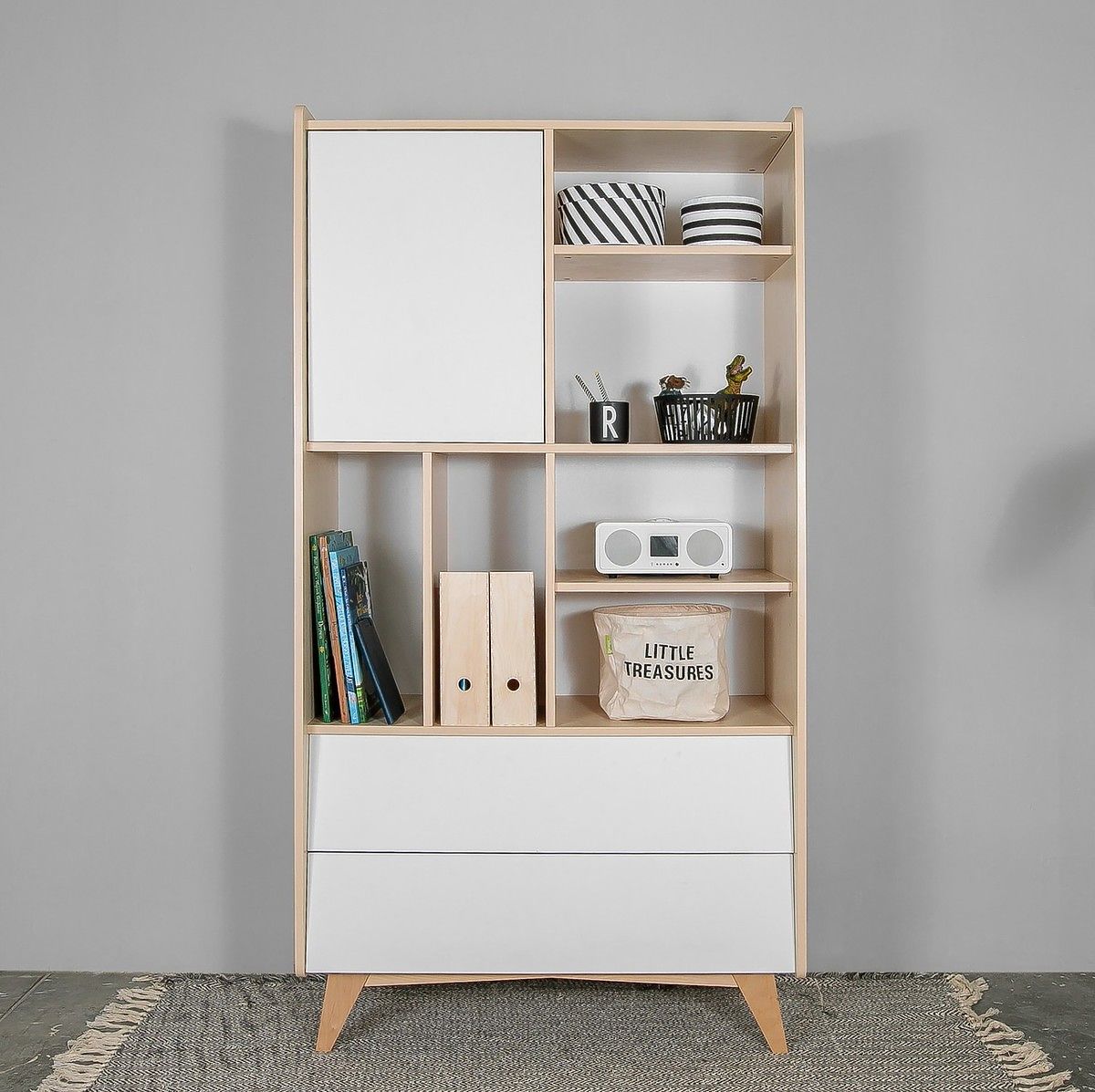 Ein wunderschönes weißes Regal aus der So Sixty-Kollektion im Retro-Stil verleiht sowohl einem Mädchen- als auch einem Jungenzimmer Flair. Diese originelle Bibliothekslösung bietet viele Layoutkombinationen.
