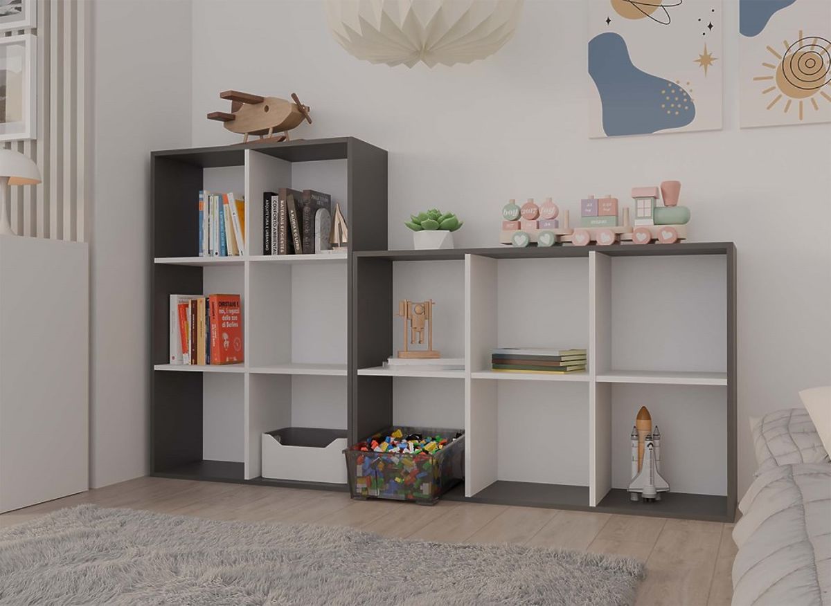 Banaby.de » Bücherschränke, Regalsysteme und Regale / Kinderregale / Regal Malax 2X3 ANTHRAZIT WEISS