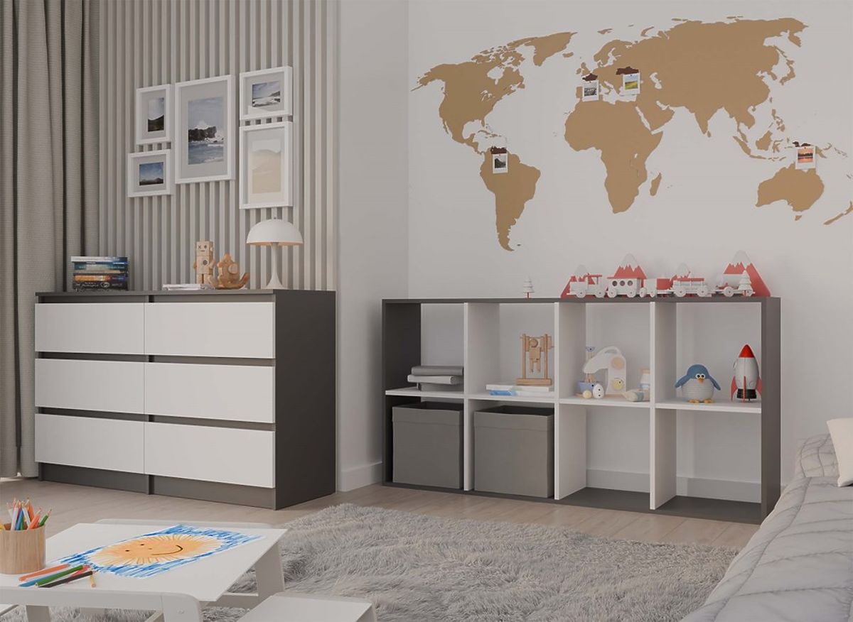 Banaby.de » Bücherschränke, Regalsysteme und Regale / Kinderregale / Regal Malax 2X4 ANTHRAZIT WEISS