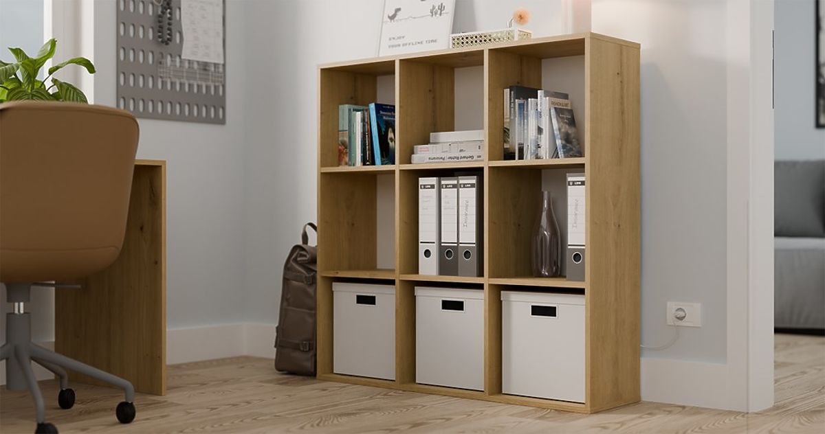 Banaby.de » Bücherschränke, Regalsysteme und Regale / Kinderregale / REGAL MALAX 3x3 H EICHE ARTISAN MIT FESTER RÜCKWAND HDF REGALEN 110x110 CM