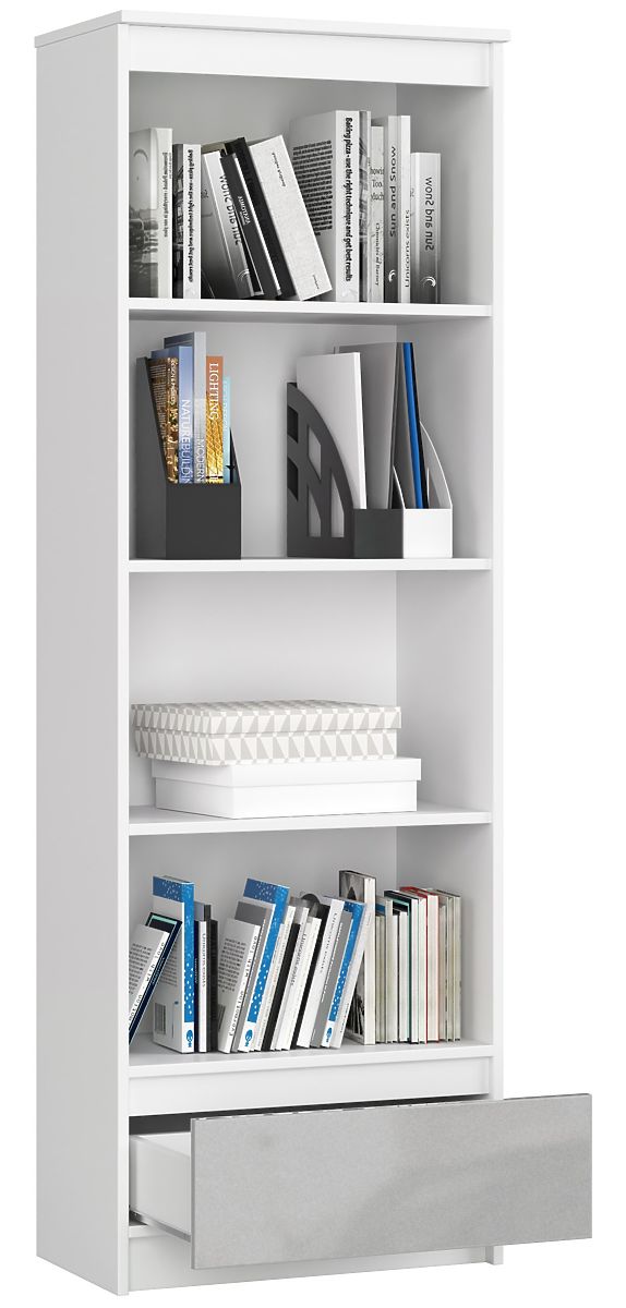 Banaby.de » Bücherschränke, Regalsysteme und Regale / Kinderregale / REGAL R 60 cm CLP 1 SCHUBLADE 4 REGALBÖDEN WEISS / METALLISCHER GLANZ