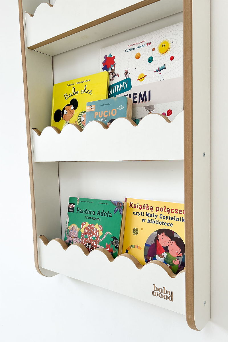 Regal WAVE L in Weiß ist ein praktisches und dekoratives Wandregal, das hilft, Ordnung im Kinderzimmer zu halten, ohne Platz auf dem Boden einzunehmen. Es ist ideal für Bücher, kleine Spielsachen, Fotos oder andere wertvolle Gegenstände Ihres Kindes. Durch die Wandmontage bleibt der Boden frei für Spiel und Bewegung, was sowohl Kinder als auch Eltern zu schätzen wissen. Elegantes und funktionales Design des Regals ermöglicht eine einfache Aufbewahrung und Präsentation der Lieblingsstücke Ihres Kindes. Abgerundete Kanten und hochwertige Verarbeitung sorgen für eine sichere Nutzung auch für kleine Kinder.