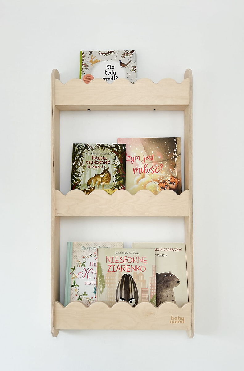 Wandregal WAVE M in natürlicher Farbe ist ein praktisches und dekoratives Bücherregal für die Wand, das hilft, Ordnung im Kinderzimmer zu halten, ohne Platz auf dem Boden einzunehmen. Es eignet sich ideal für Bücher, Spielzeug, Dekorationen oder kleine Gegenstände Ihres Kindes. Die Wandmontage ermöglicht einen freien Boden für Spiel und andere Aktivitäten. Das natürliche Aussehen und die hochwertige Verarbeitung des Regals verleihen dem Kinderzimmer eine gemütliche Note. Abgerundete Kanten und glatte Oberflächen gewährleisten eine sichere Nutzung auch für kleine Kinder.