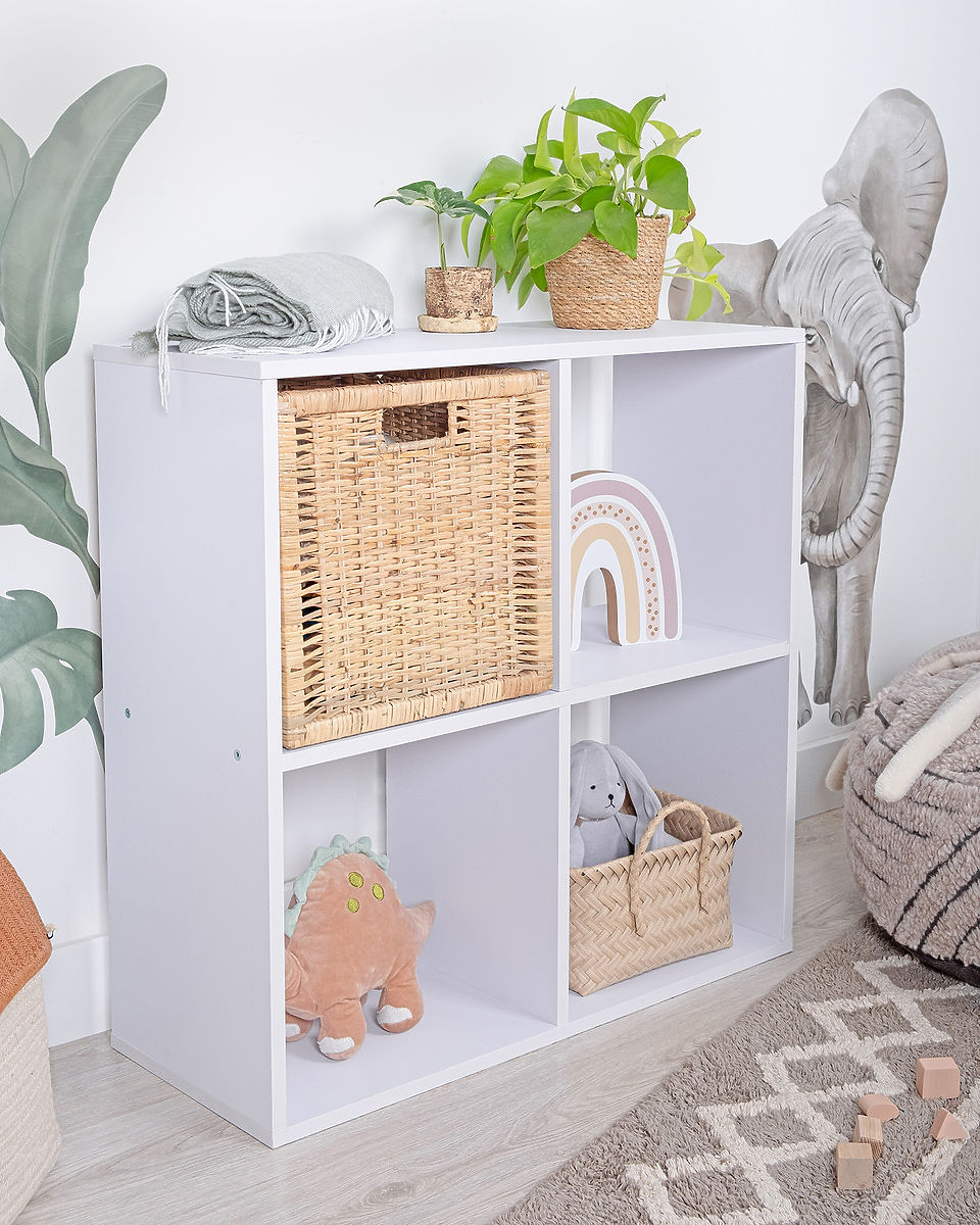 Der moderne Regal REGI ist eine großartige funktionale Ergänzung nicht nur für das Kinderzimmer. Dank seiner universellen weißen Farbe passt er sowohl in Jungen- als auch in Mädchenzimmer. Der Stauraum kann als Bibliothek, Ablagefach oder in Kombination mit einer Aufbewahrungsbox als Schublade genutzt werden.