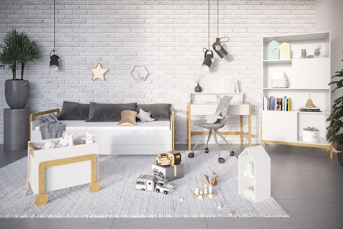 Lassen Sie sich von dem skandinavischen Wohnstil inspirieren! Das schöne weiße Regal Viktor im skandinavischen Stil bereichert jedes Kinderzimmer. Dieses originelle Bücherregal bietet viele Layout-Kombinationen.
