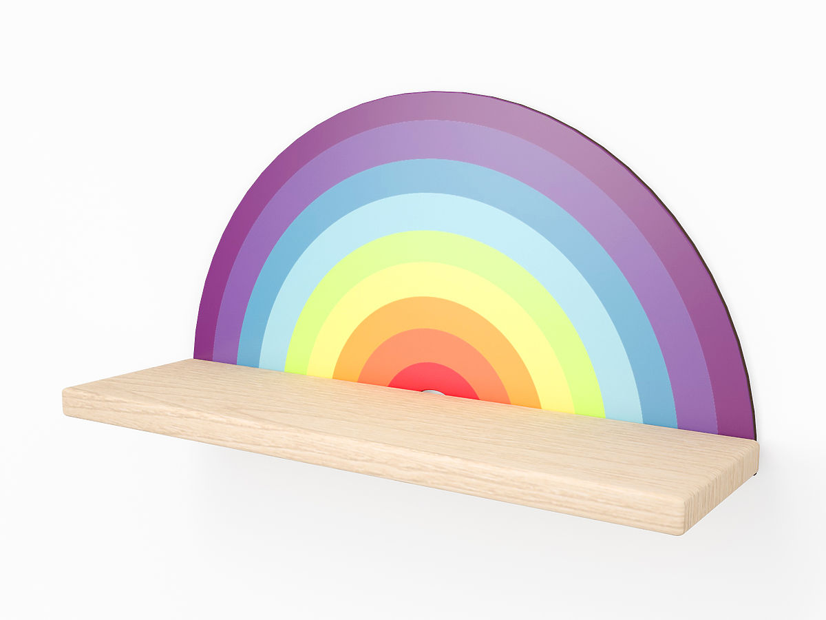 Dieses schöne Regal mit Regenbogenmotiv passt in jedes Kinderzimmer.