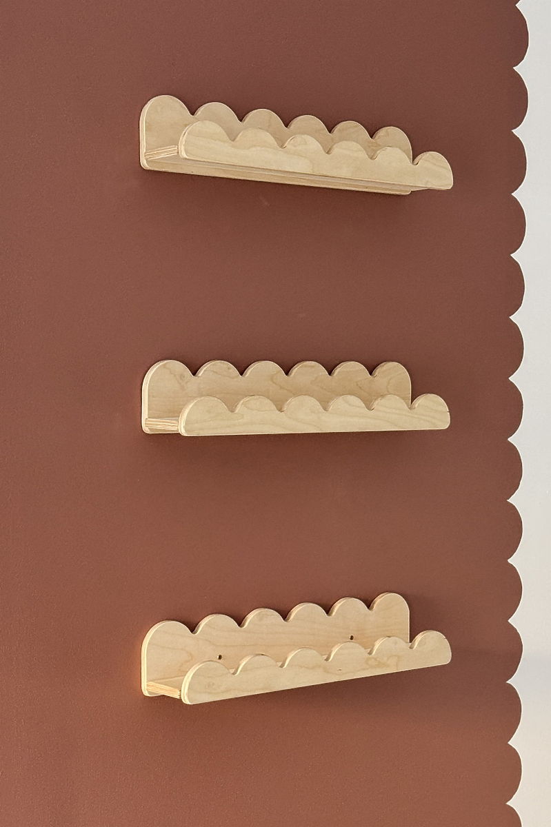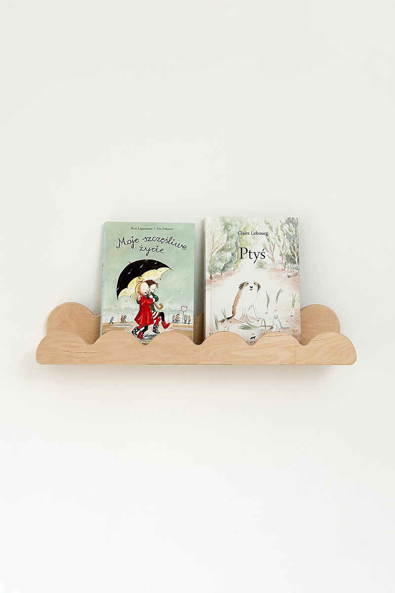 Regal WAVE in Naturfarbe ist ein praktisches und dekoratives Accessoire für das Kinderzimmer, das hilft, Ordnung zu halten und gleichzeitig einen angenehmen, natürlichen Akzent setzt. Dank der beweglichen Rüsche können Sie ihr Aussehen leicht verändern und die Lieblingskleinigkeiten Ihres Kindes – Bücher, Figuren, Fotos oder kleine Dekorationen – ausstellen oder verbergen. Das Design des Regals ermöglicht es, mehrere Stücke nebeneinander zu kombinieren und eine originelle, funktionale und ästhetische Wand zu schaffen, die mit den Bedürfnissen des Kindes wächst. Abgerundete Kanten und eine glatte Ausführung gewährleisten eine sichere Nutzung auch für die Kleinsten.