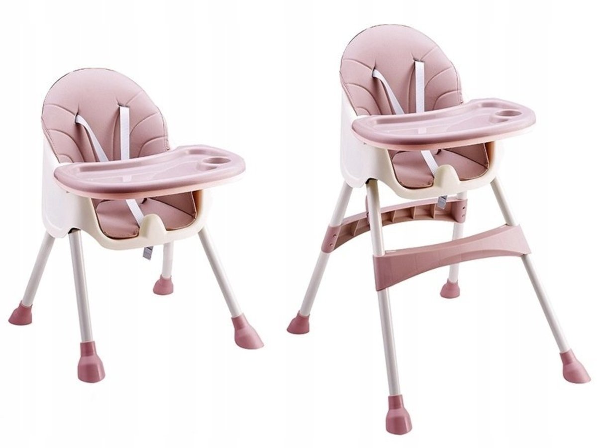 Multifunktionaler, sicherer und gleichzeitig sehr bequemer Esszimmerstuhl (2in1) in pink-weißem Design. Der Stuhl ermöglicht es Ihren Kindern, mit Ihnen zu speisen und so die richtigen Essgewohnheiten von den ersten Monaten an zu erlernen.