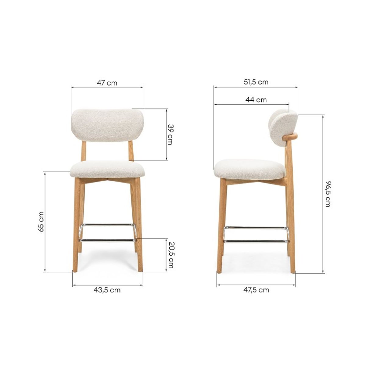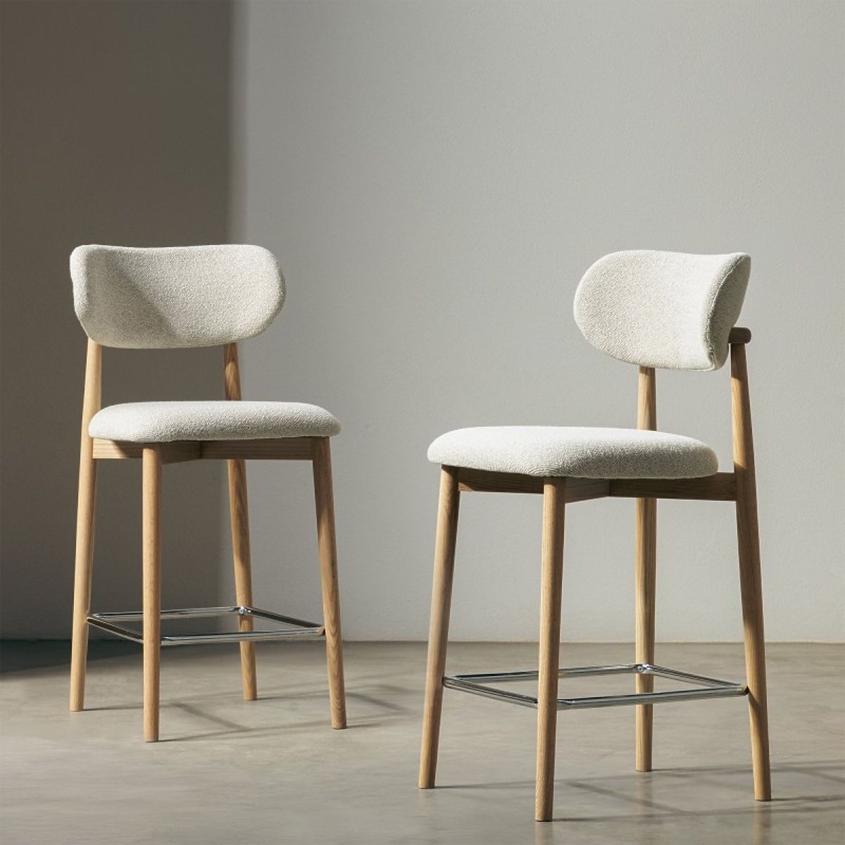 Cremefarbener Barhocker Amalfi mit Eichenholzbeinen. .. mehr