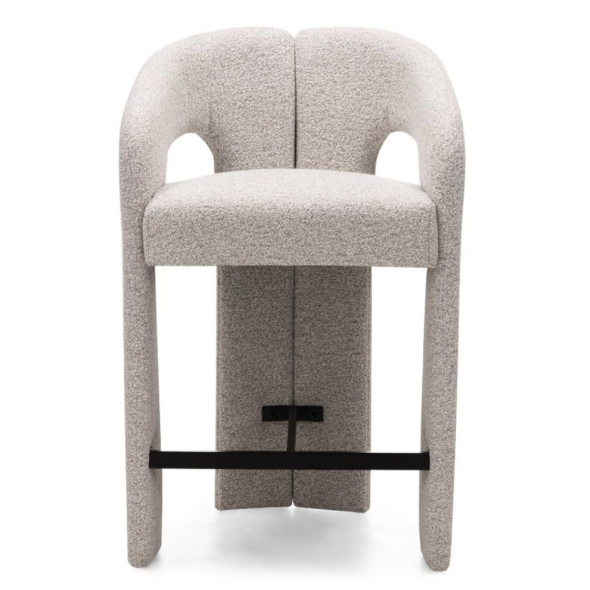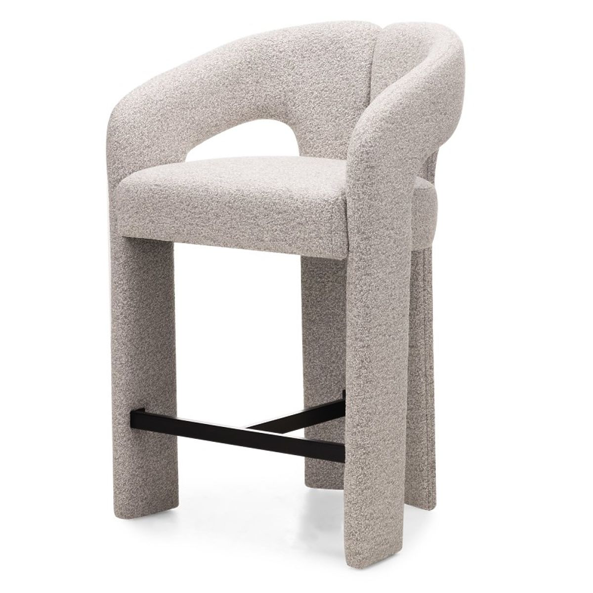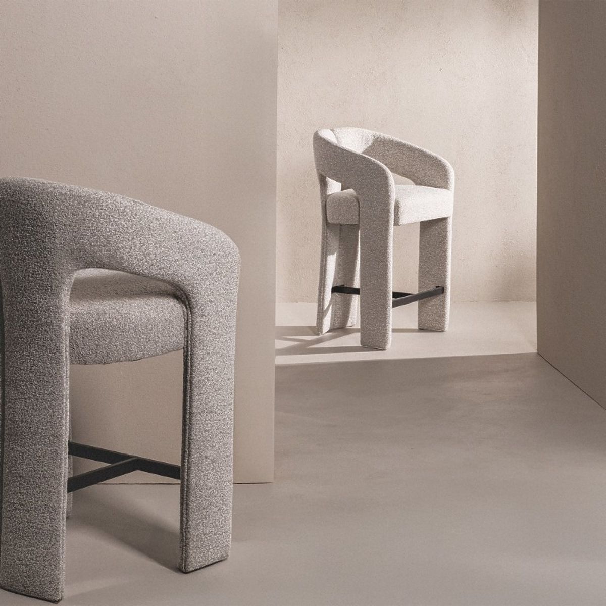 Der Barhocker Castelo vereint modernen Minimalismus mit gemütlicher Eleganz. Der weiche Stoff, die abgerundete Form und die bequemen Armlehnen sorgen für täglichen Komfort, während die durchdachten Details ihn ideal für die Küche oder das Esszimmer machen.