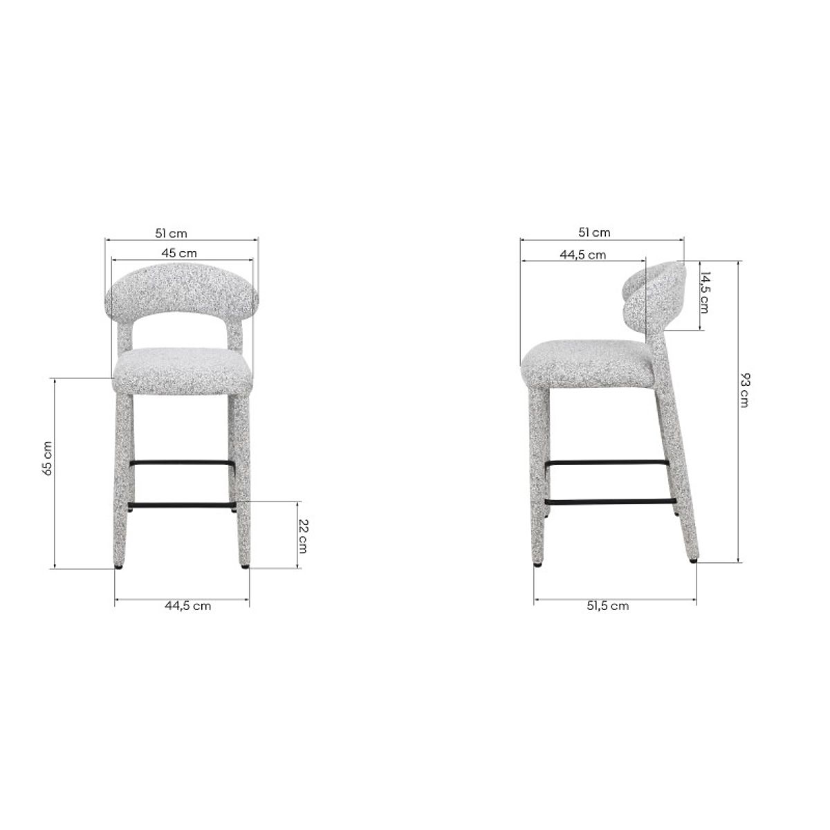 Der Barhocker Hiroki ist eine stilvolle und funktionale Wahl, die sich hervorragend für die Platzierung an einer Kücheninsel eignet und somit einen bequemen Ort für Mahlzeiten schafft. Sein meliertes Polster mit mehrfarbigem Muster verleiht dem Interieur eine gemütliche und elegante Note.
