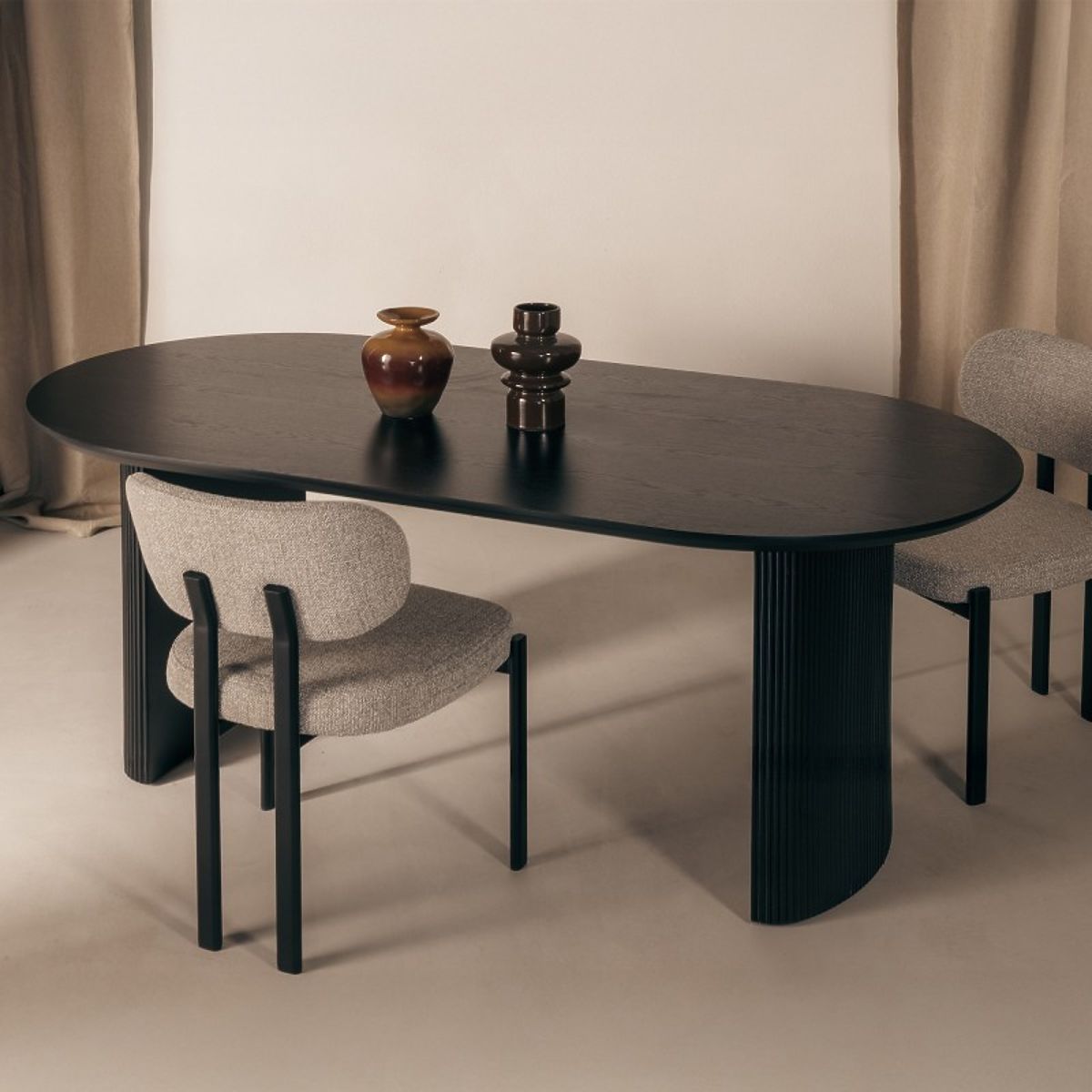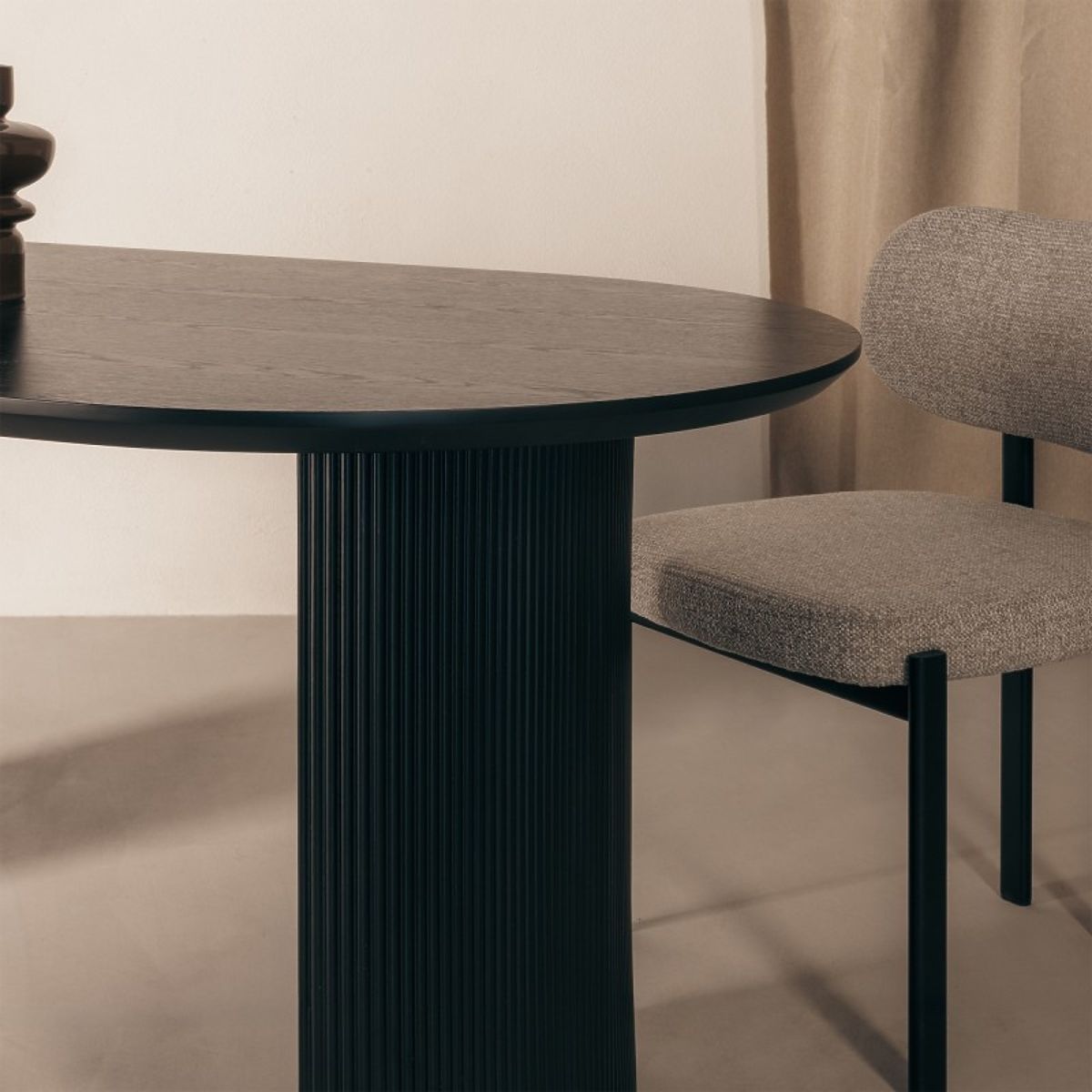 Der Tisch Maurizio ist eine hervorragende Wahl für diejenigen, die ihrem Esszimmer ein außergewöhnliches Element hinzufügen möchten. Seine ovale Platte bietet einen bequemen Platz für gemeinsames Speisen und die stabile, geriffelte Basis garantiert Stabilität und ein einzigartiges Design.
