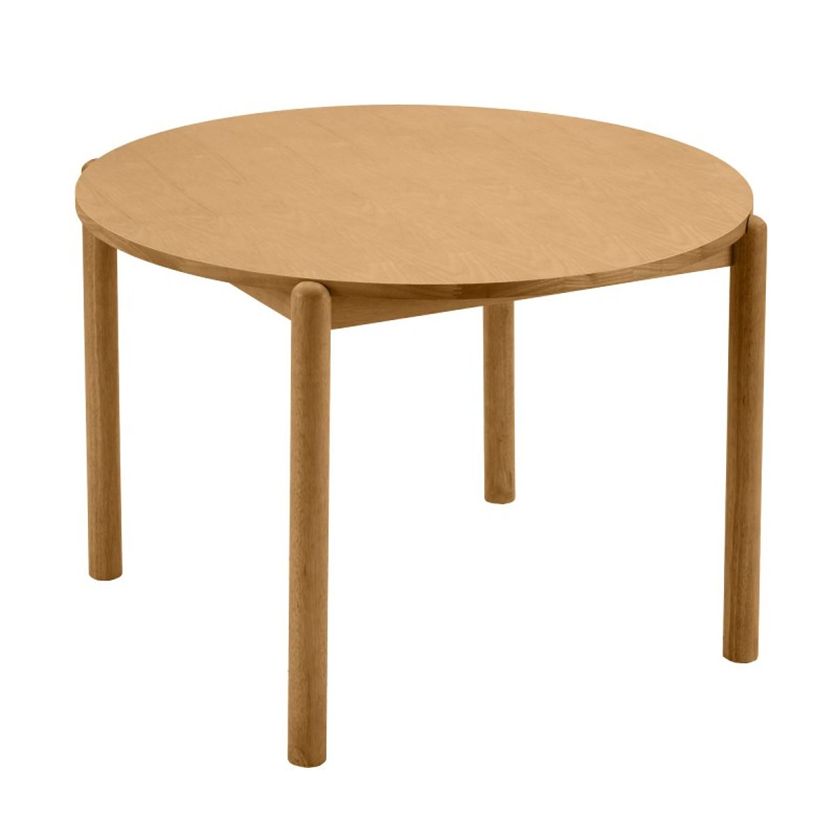 Runder Esstisch Yoko mit natürlicher Färbung und Holzbeinen. .. mehr
