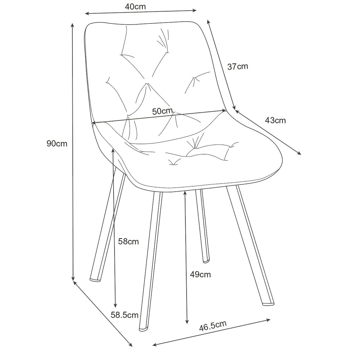 Gestepptes Stuhl für Ess- und Wohnzimmer aus Veloursmaterial.