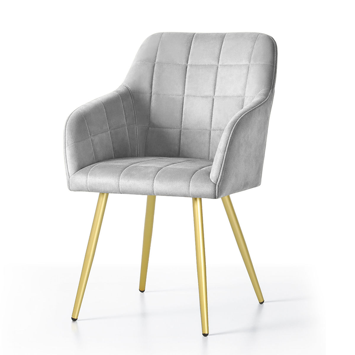 Banaby.de » Möbel / Esszimmer / Esszimmerstühle / 4x Gepolsterter Stuhl mit quadratischer Steppung Grau LUXANO Goldene Beine