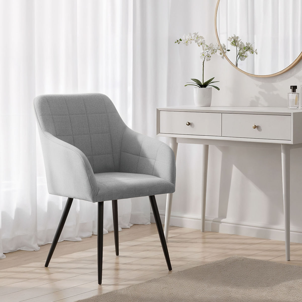 Banaby.de » Möbel / Esszimmer / Esszimmerstühle / 4x Gepolsterter Stuhl mit quadratischer Steppung Hellgrau LUXANO Schwarze Beine Stoff Lumos