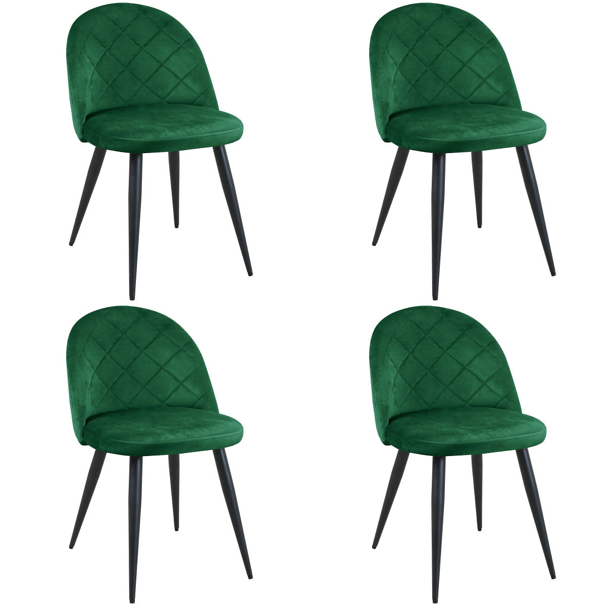 4x Samtgepolsterte gesteppte Stühle SJ.077 Flaschengrün