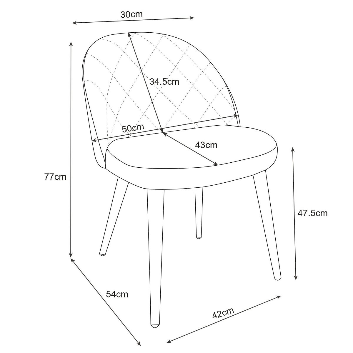 Das Set aus Samtstühlen findet viele Anwendungen in modernen Arrangements. Sie eignen sich hervorragend als Stühle für Esszimmer, Büros, aber auch für Kosmetik- oder Friseursalons. Das Produkt hat eine Polsterung aus weichem Samtstoff, eine abgerundete Rückenlehne mit gesteppter Naht und Metallbeine in schwarzer Farbe.