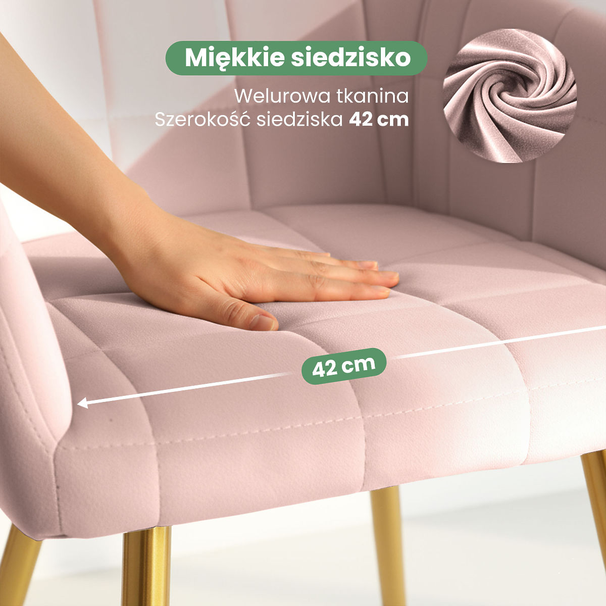 Banaby.de   »   Möbel   /   Esszimmer   /   Esszimmerstühle   /   6x Gepolsterter Stuhl mit quadratischer Steppung Puderrosa LUXANO Goldene Beine