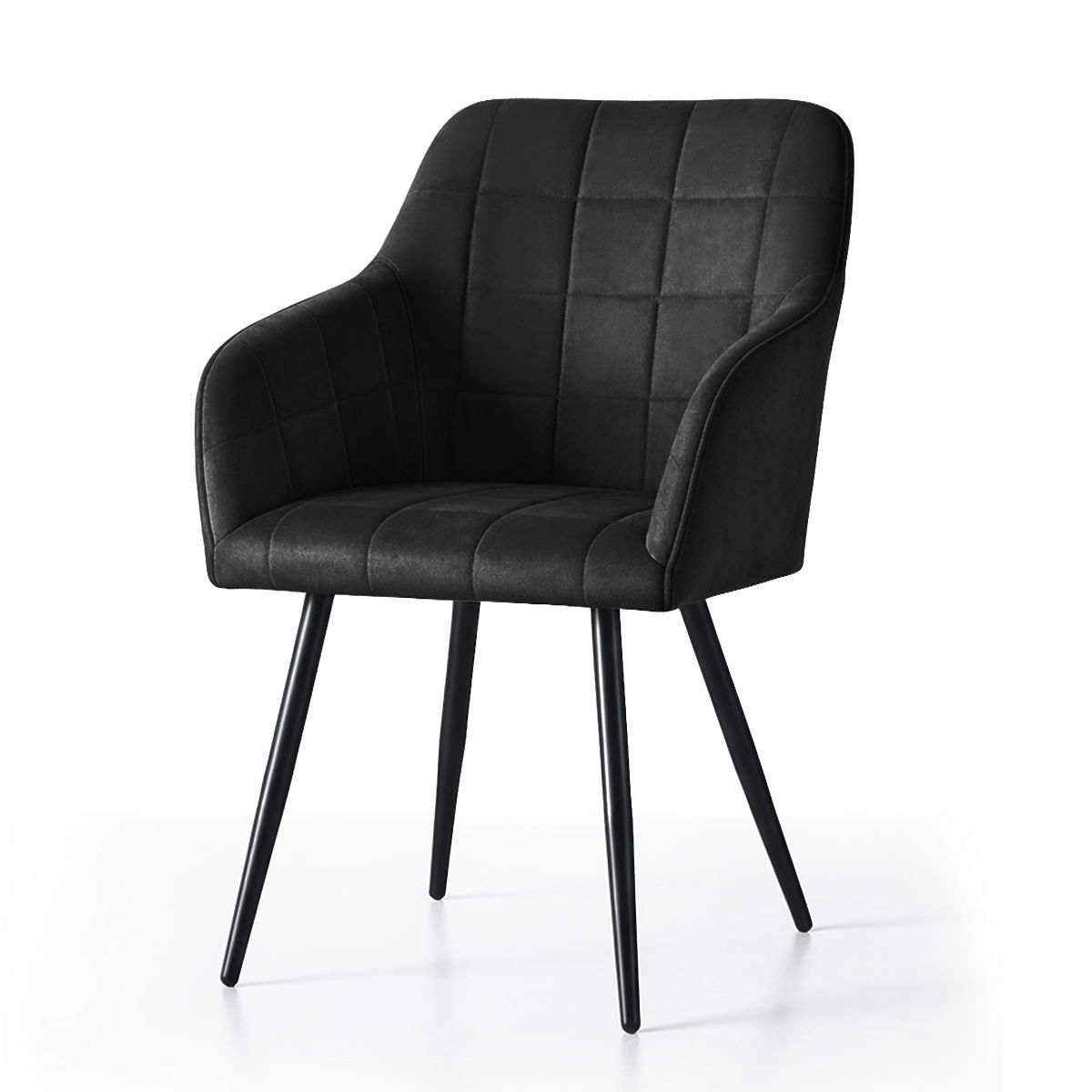 Banaby.de » Möbel / Esszimmer / Esszimmerstühle / 6x Gepolsterter Stuhl mit quadratischer Steppung Schwarz LUXANO Schwarze Beine