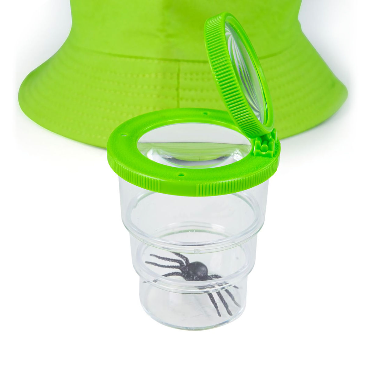 Mit dem Set zur Insektenjagd werden Ihre Kinder plötzlich zu echten Naturforschern und Entdeckern. Es enthält sämtliches Zubehör, das sowohl zum Jagen als auch zum Tragen und Beobachten von Fängen notwendig ist. Die Tiere können mit einem Kescher oder einer Zange gefangen und in einen Behälter oder eine Tüte gebracht werden, und den Kindern entgeht dank der Lupe kein Detail. Darüber hinaus enthält das Set auch Zubehör in Form eines nützlichen Sonnenhuts und eines Fernglases zur Beobachtung des Geländes oder anderer Tiere. Dank des abnehmbaren Teleskopgriffs des Keschers und der Faltstruktur der Keschertasche ist das Set praktisch verstaubar und kann Sie so jederzeit auf Ausflügen ins Freie begleiten. Das leuchtend grüne Farbdesign ist ein Blickfang für Kinder und greift gleichzeitig nicht in die Natur ein. Alle Komponenten wurden aus hochwertigen und verantwortungsvoll beschafften Materialien hergestellt. Hauptmerkmale: Kescher, Keschertasche, Behälter für Fänge, Fangzange, Lupe, Fernglas und Hut. Abnehmbarer Teleskopgriff des Keschers. Praktisches Faltdesign der Tasche. Attraktive und langlebige Verarbeitung