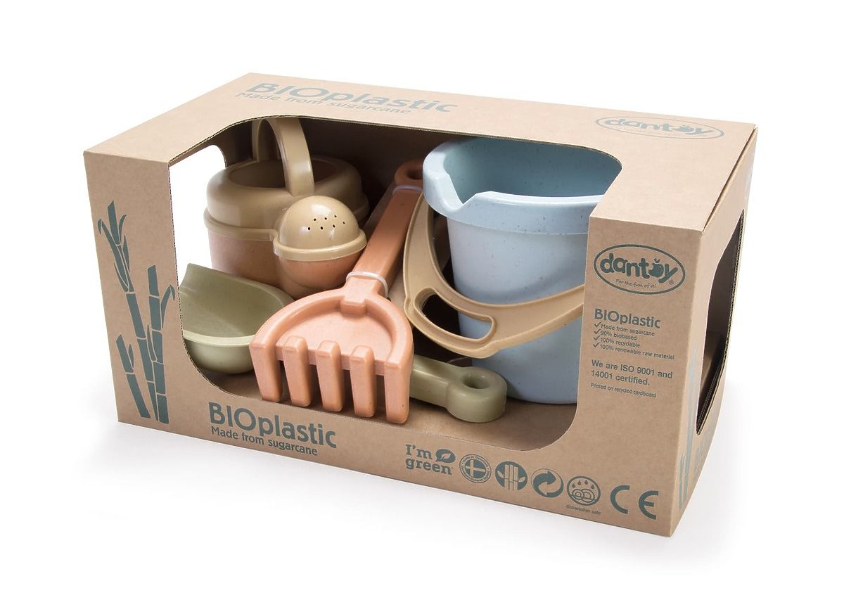 Das Set beinhaltet einen Eimer, einen Wasserkocher, eine Schaufel und einen Rechen. Es ist aus BIO-Kunststoff in wunderschönen Pastellfarben . Das Produkt wird für Kinder ab 2 Jahren empfohlen.